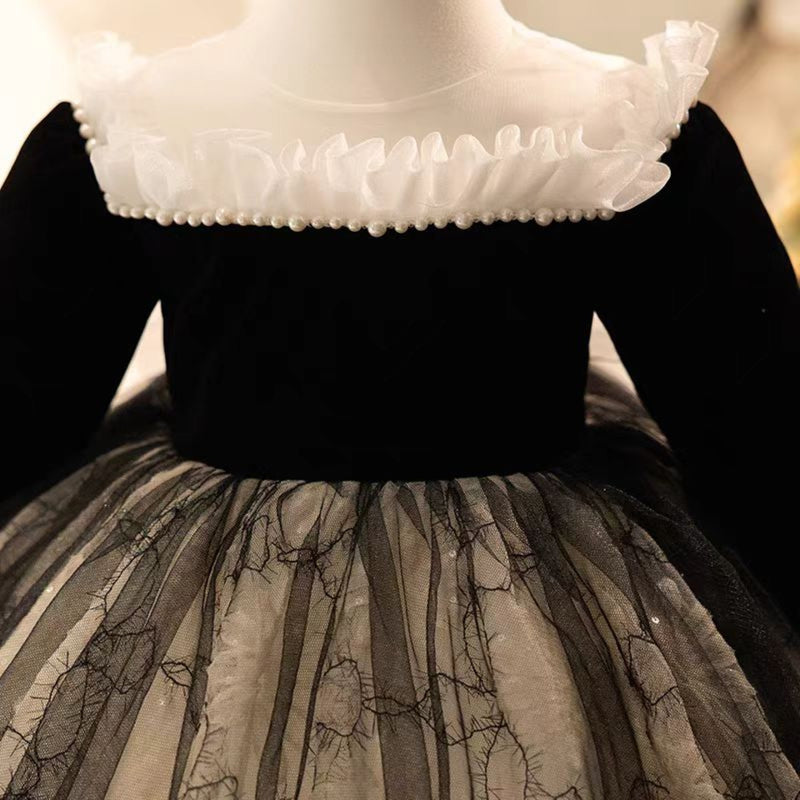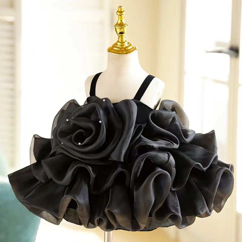 Black Flower Girl Dress Princess Kids 1st Birthday J459