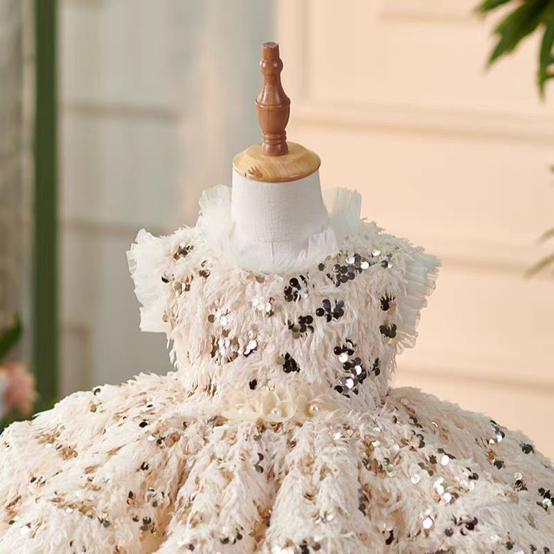 Champagne Tulle Girl Dress with 3D Flowers Toddler Kids 1st Birthday Gown J769