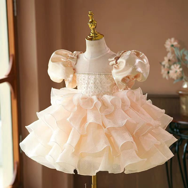 Champagne Flower Girl Dress Kids Wedding Birthday Party Holiday J740