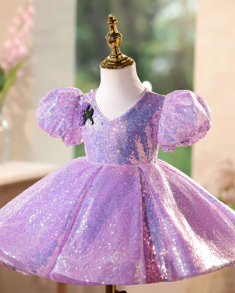 Lilac Princess Flower Girl Dress for Kids Birthday Party D147