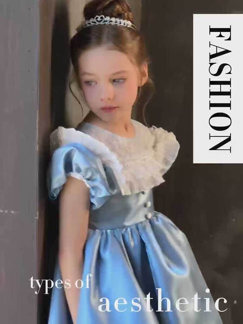 Blue Flower Girl Princess Dress for Kids Wedding Birthday Party J776