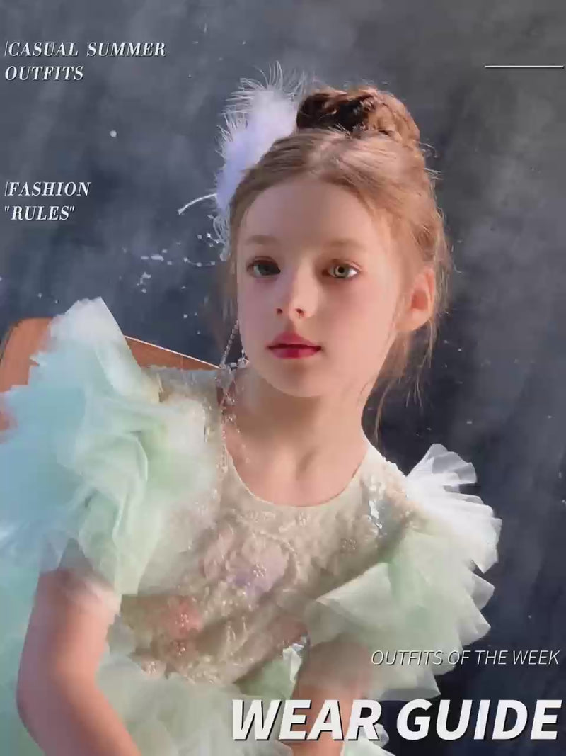 Green Princess Flower Girl Dress for Kids Birthday Party J441