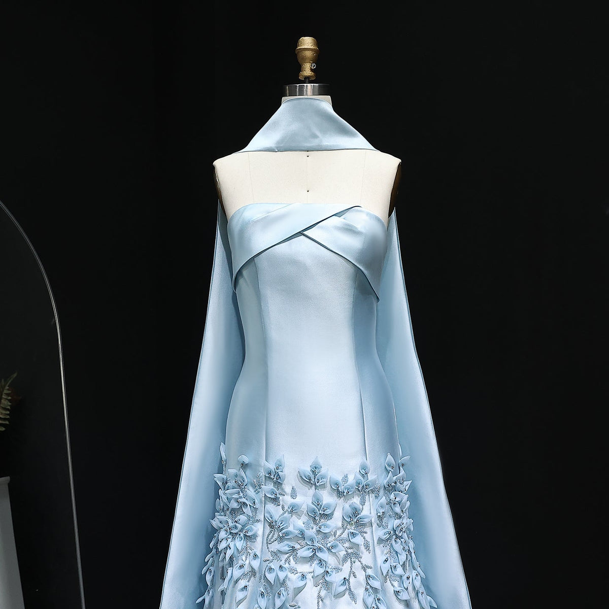 Luxury 3D Leaves Blush Pink Satin Mermaid Evening Dress with Cape SS463