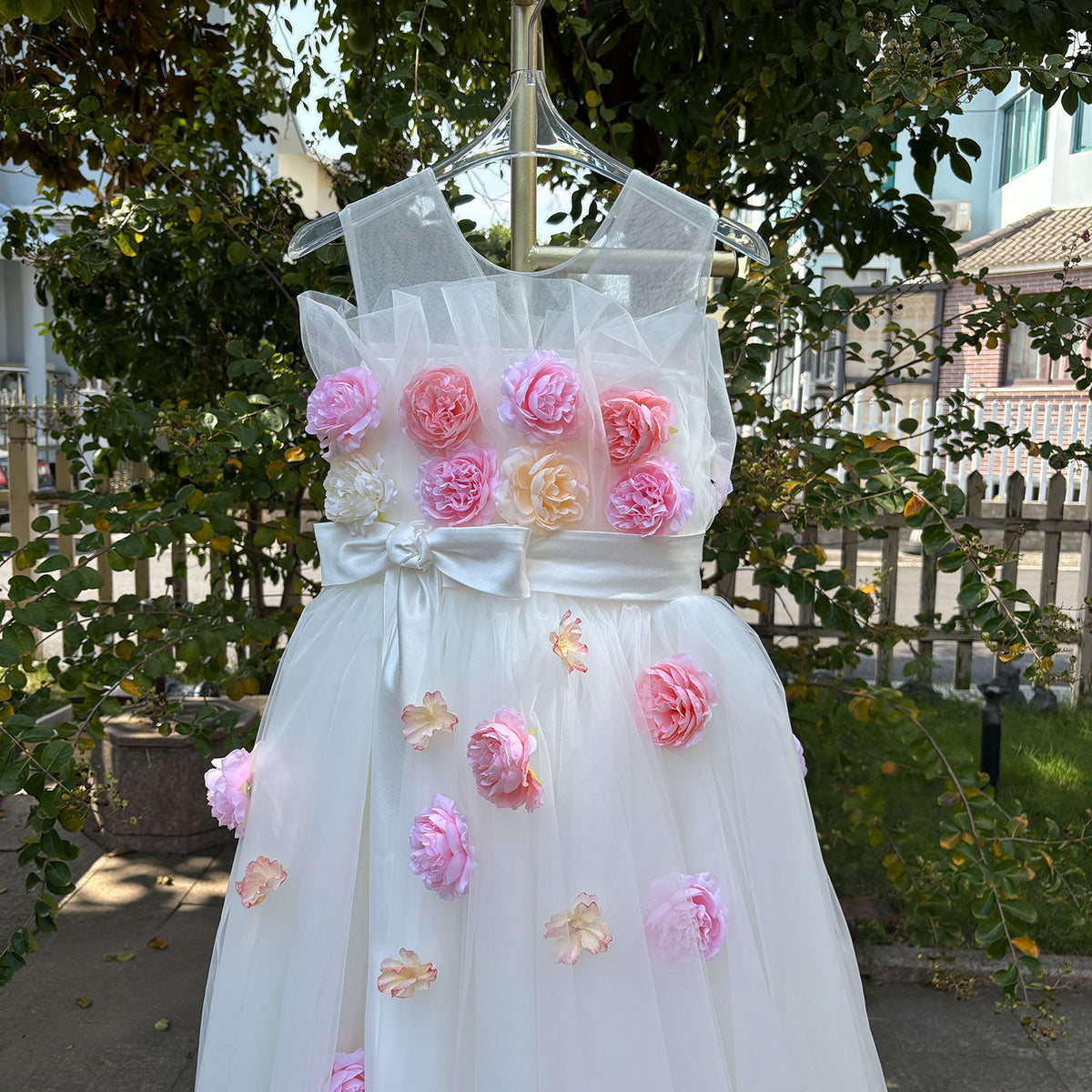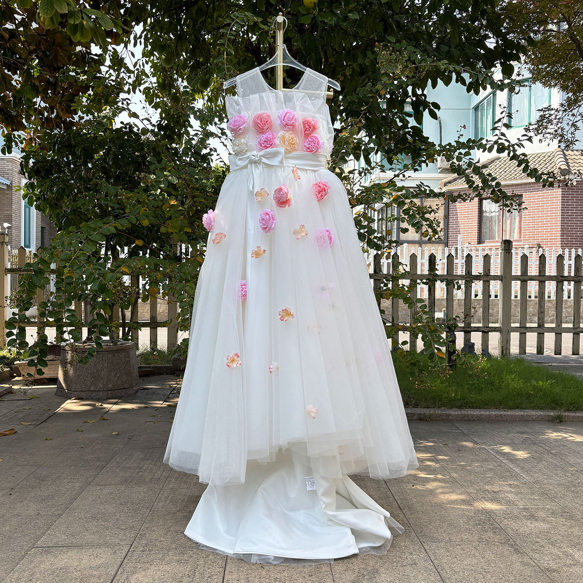 Introducing Luxury White Handmade Flowers Girl Dress - the perfect choice for First Communion. Made with exquisite craftsmanship, this dress features delicate handmade flowers that add a touch of elegance. Let your little girl feel like a princess on her special day with this luxurious dress.