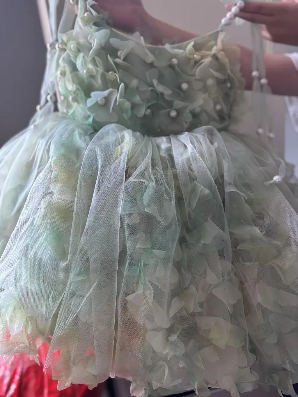 Scoop Pearl Sling Flower Girl Dress With Bow Sleeveless D053