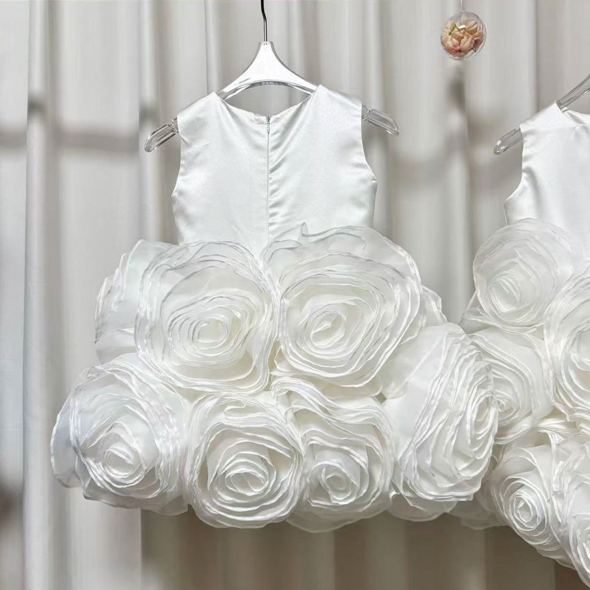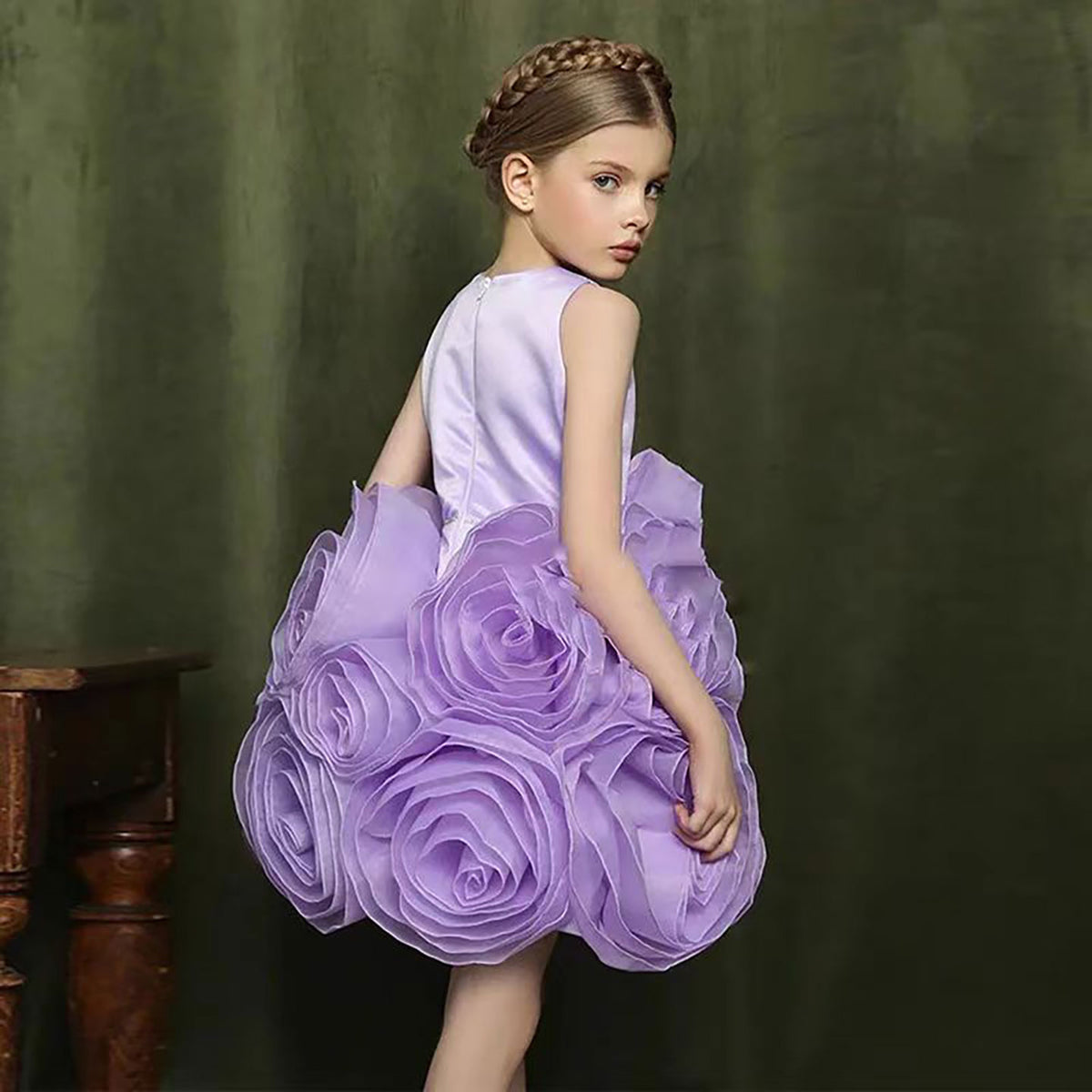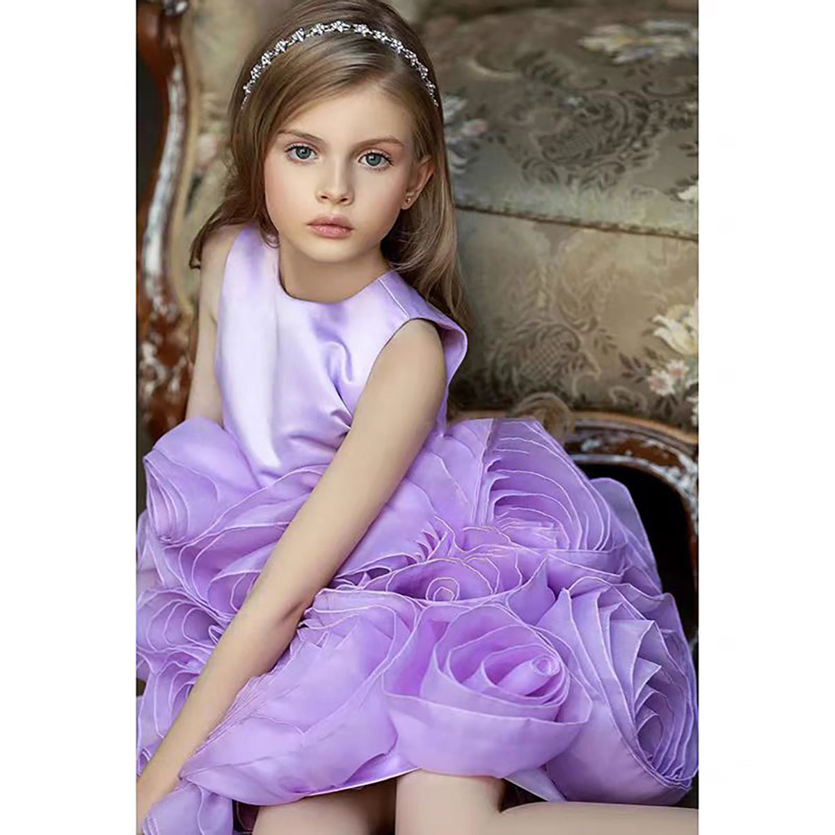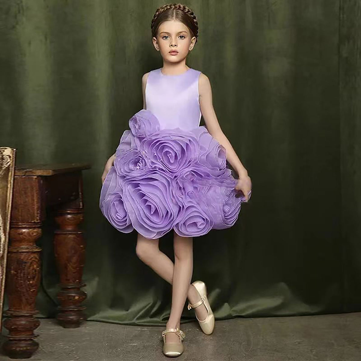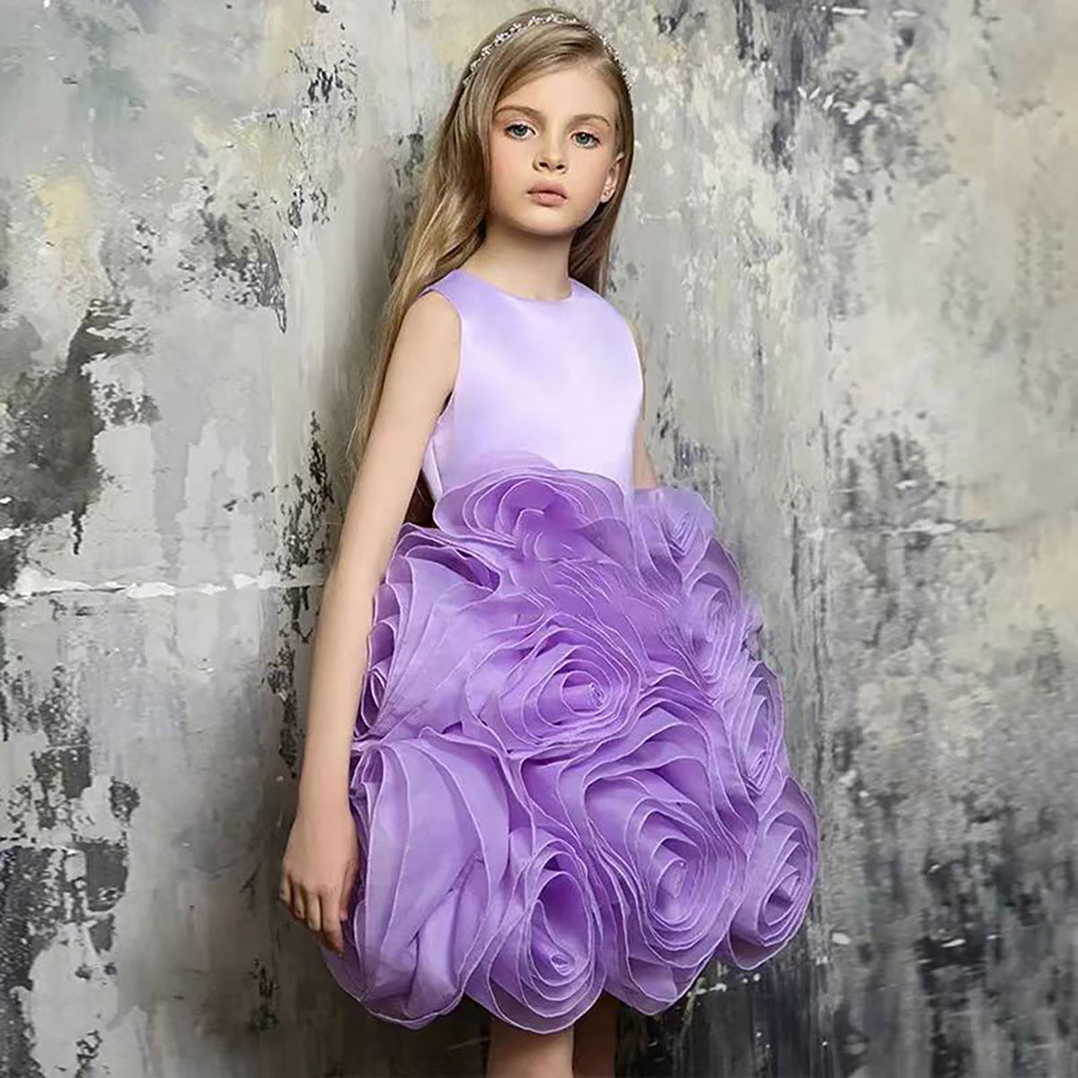 Sleeveless Satin Top 3D Flower Girl Dress Lilac D060