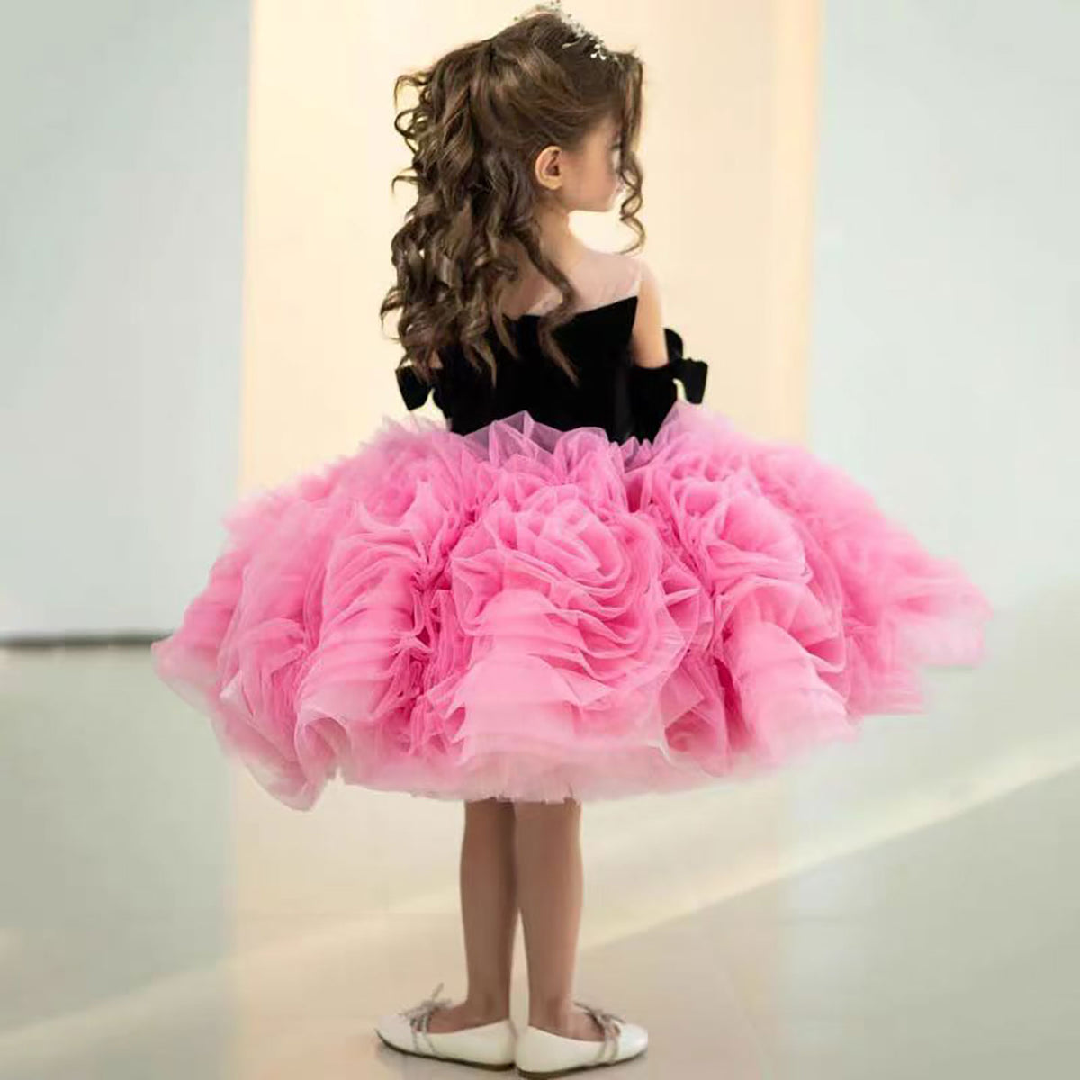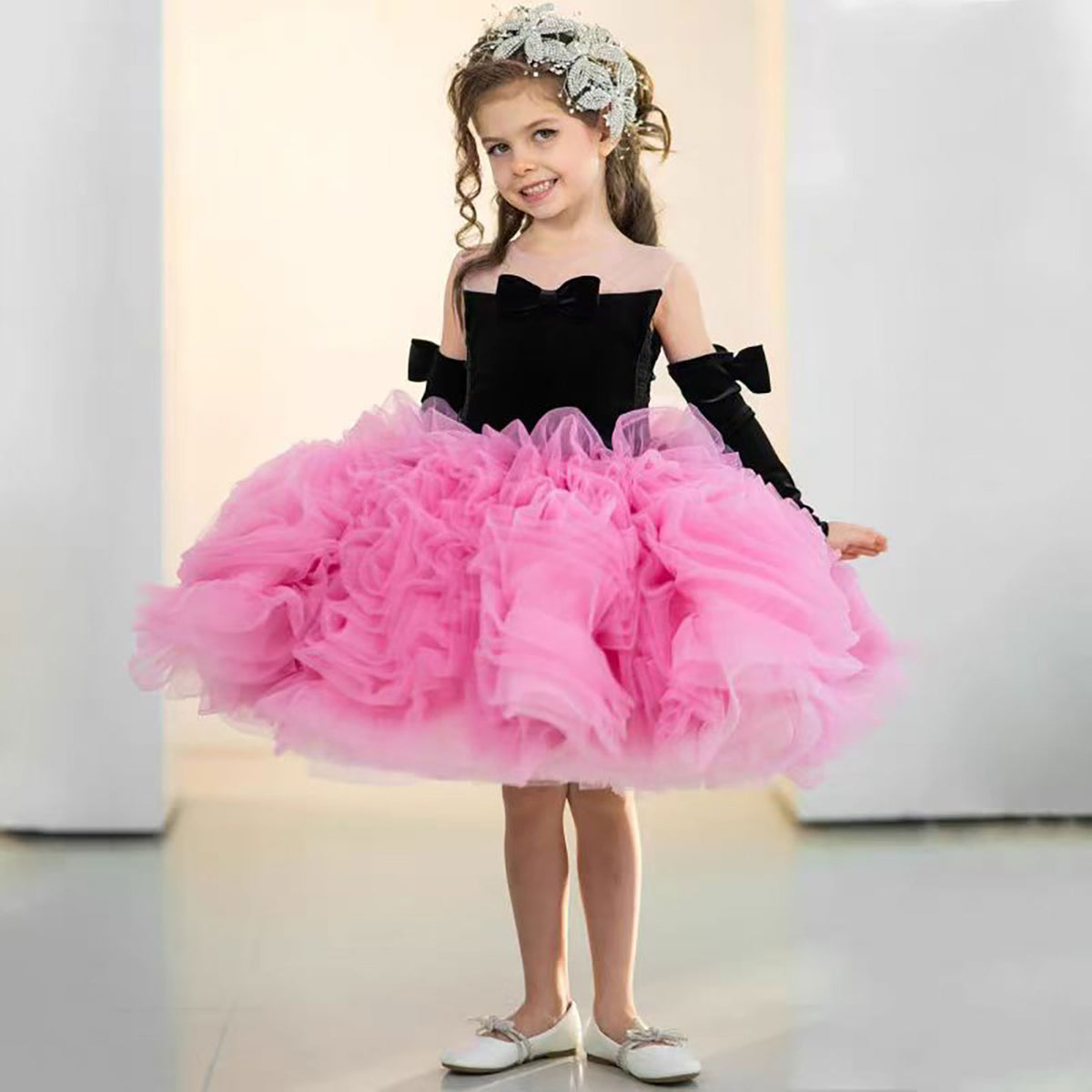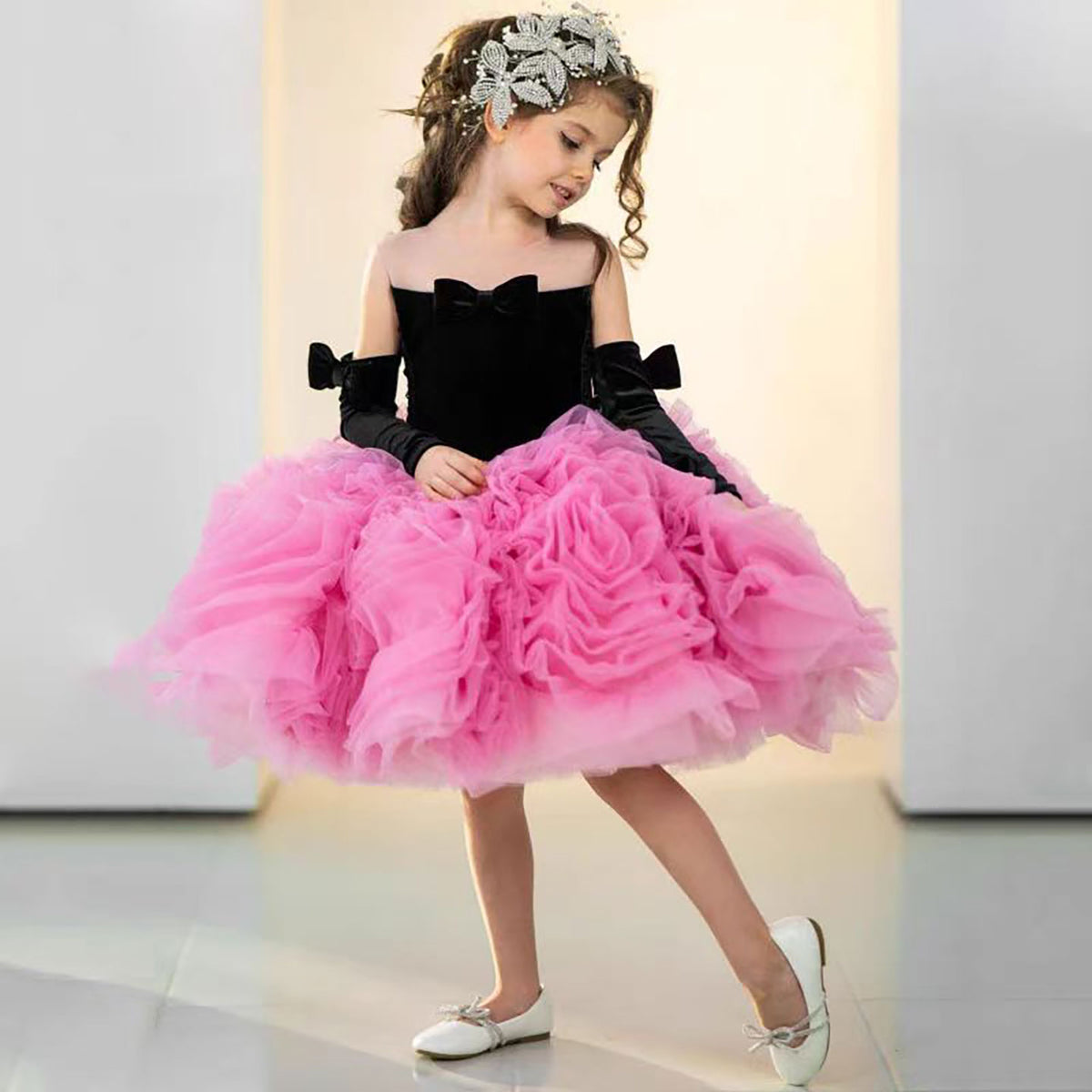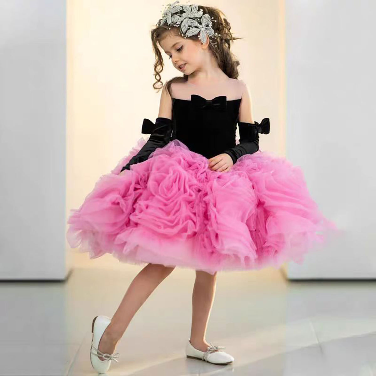 Tube Top Design Bowed Black Pink Flower Girl Dress D058