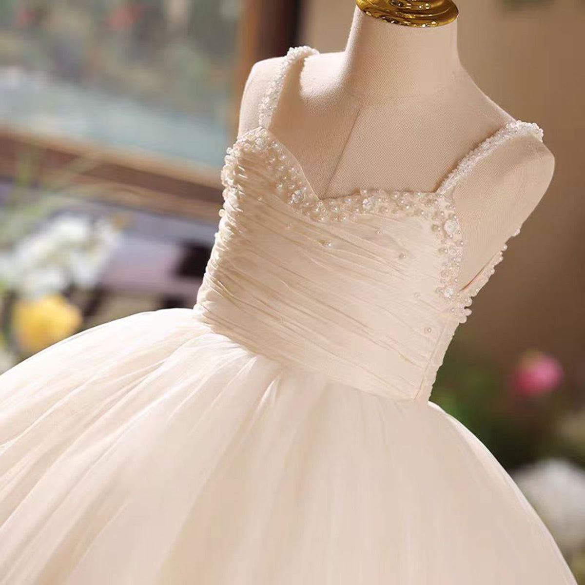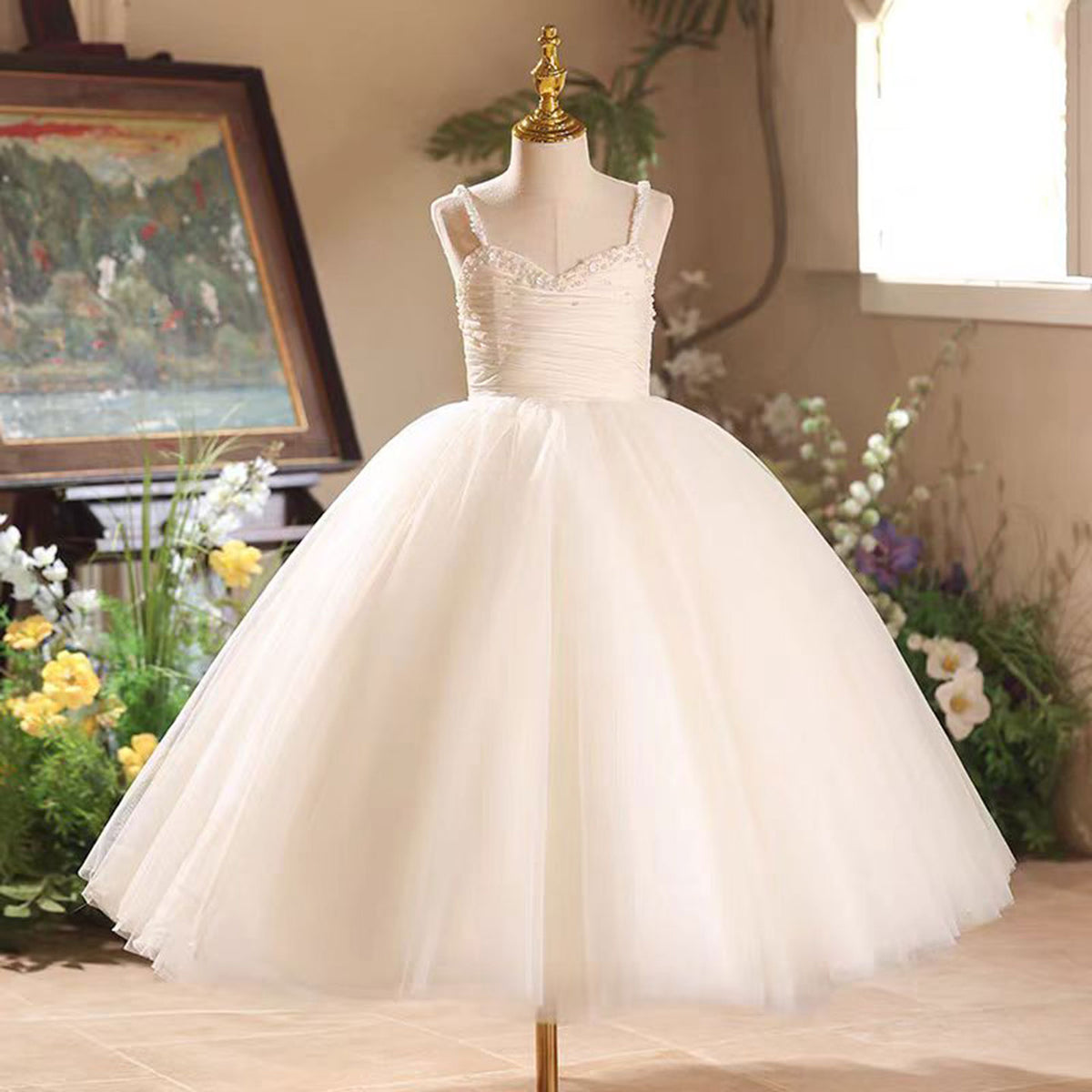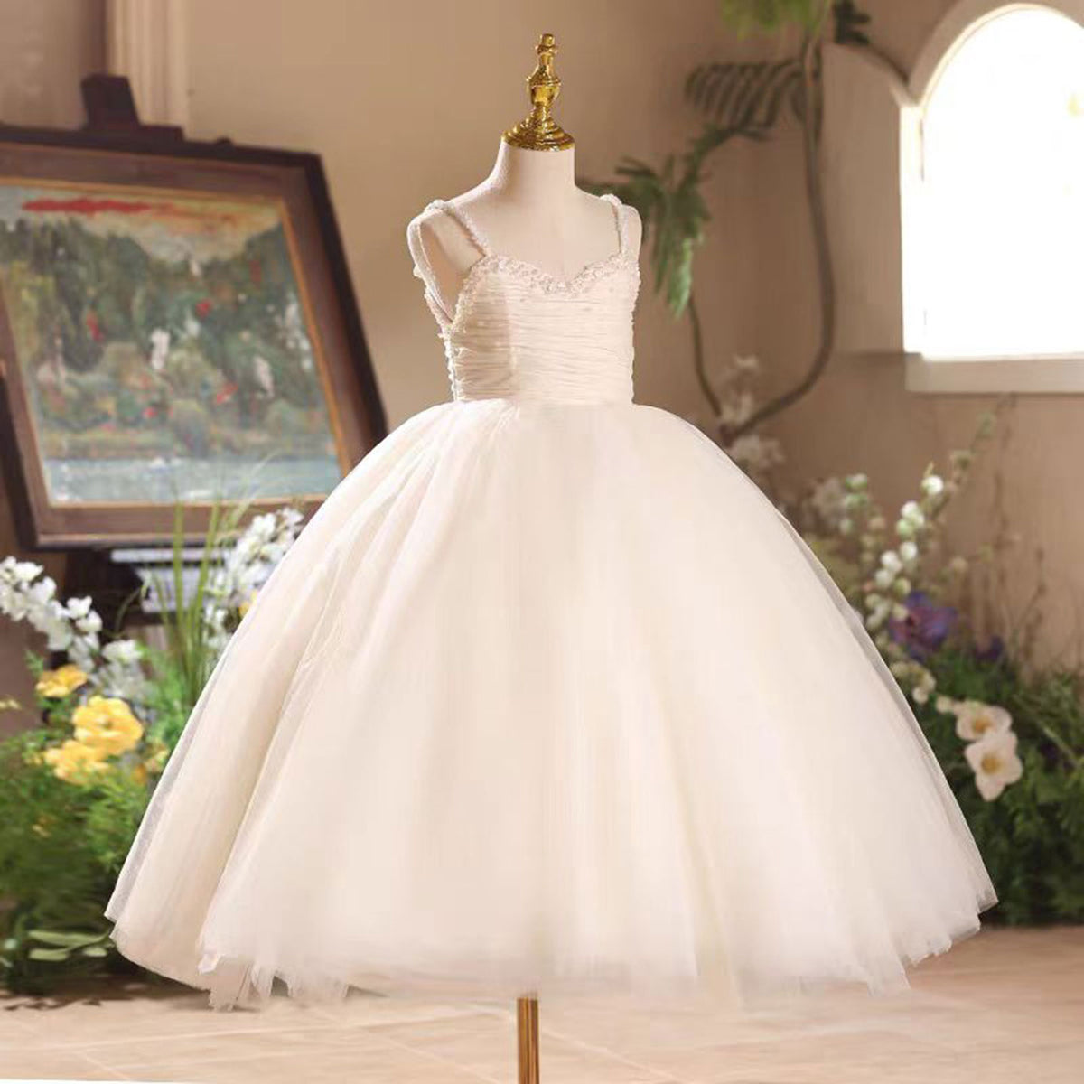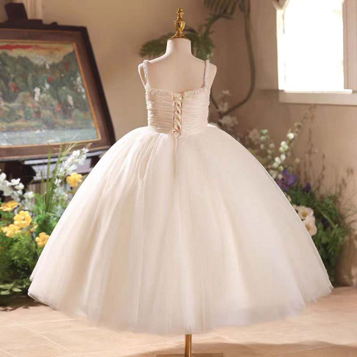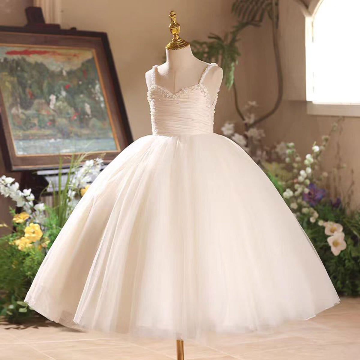 Tender-Style Sweetheart Spaghetti Strap Beaded Flower Girl Dress D019