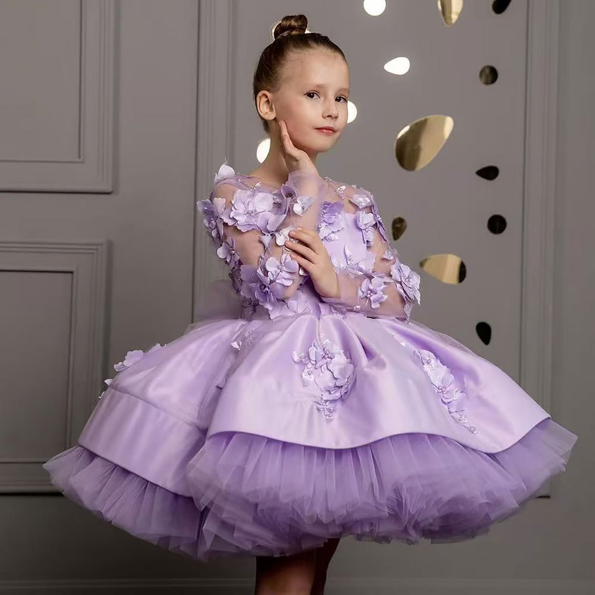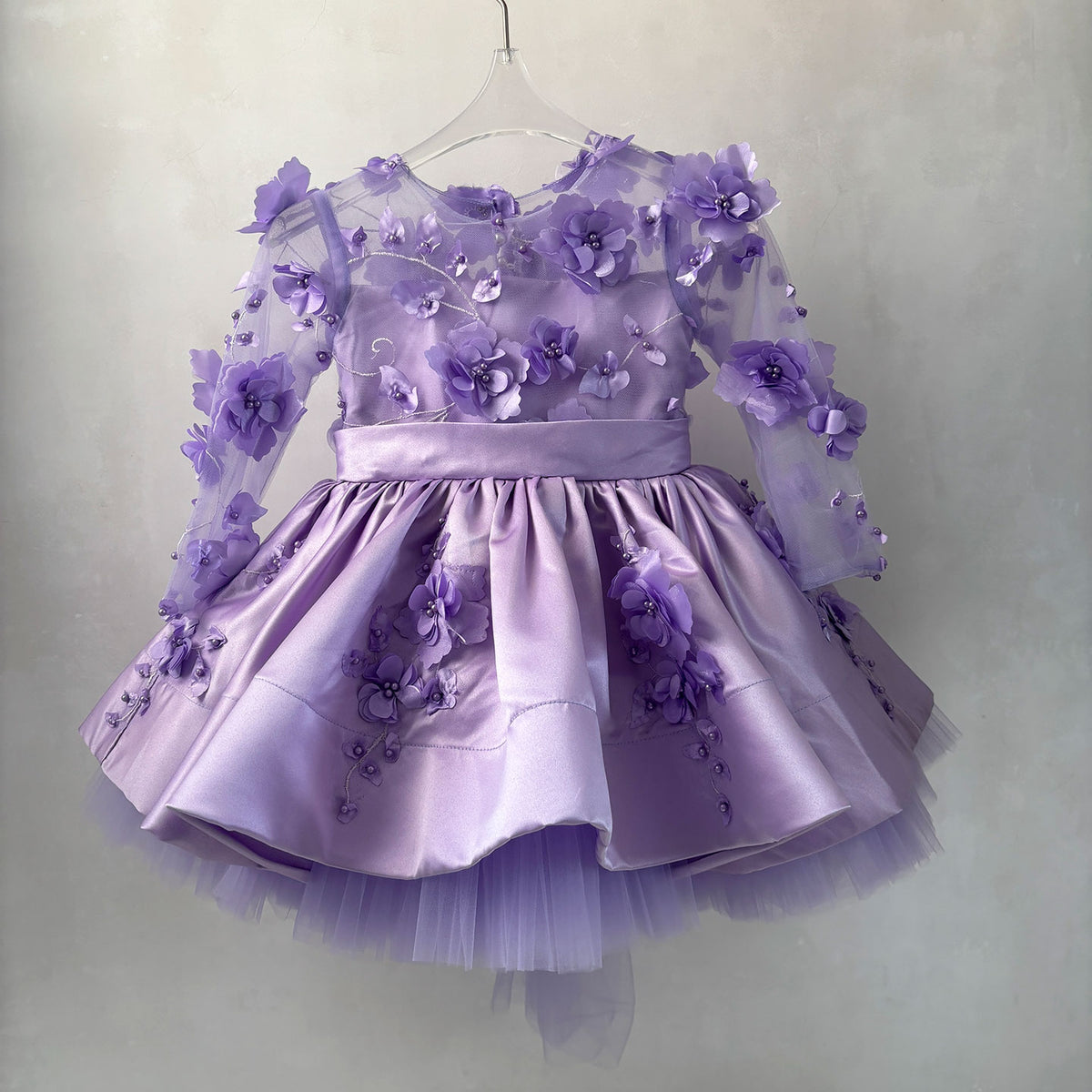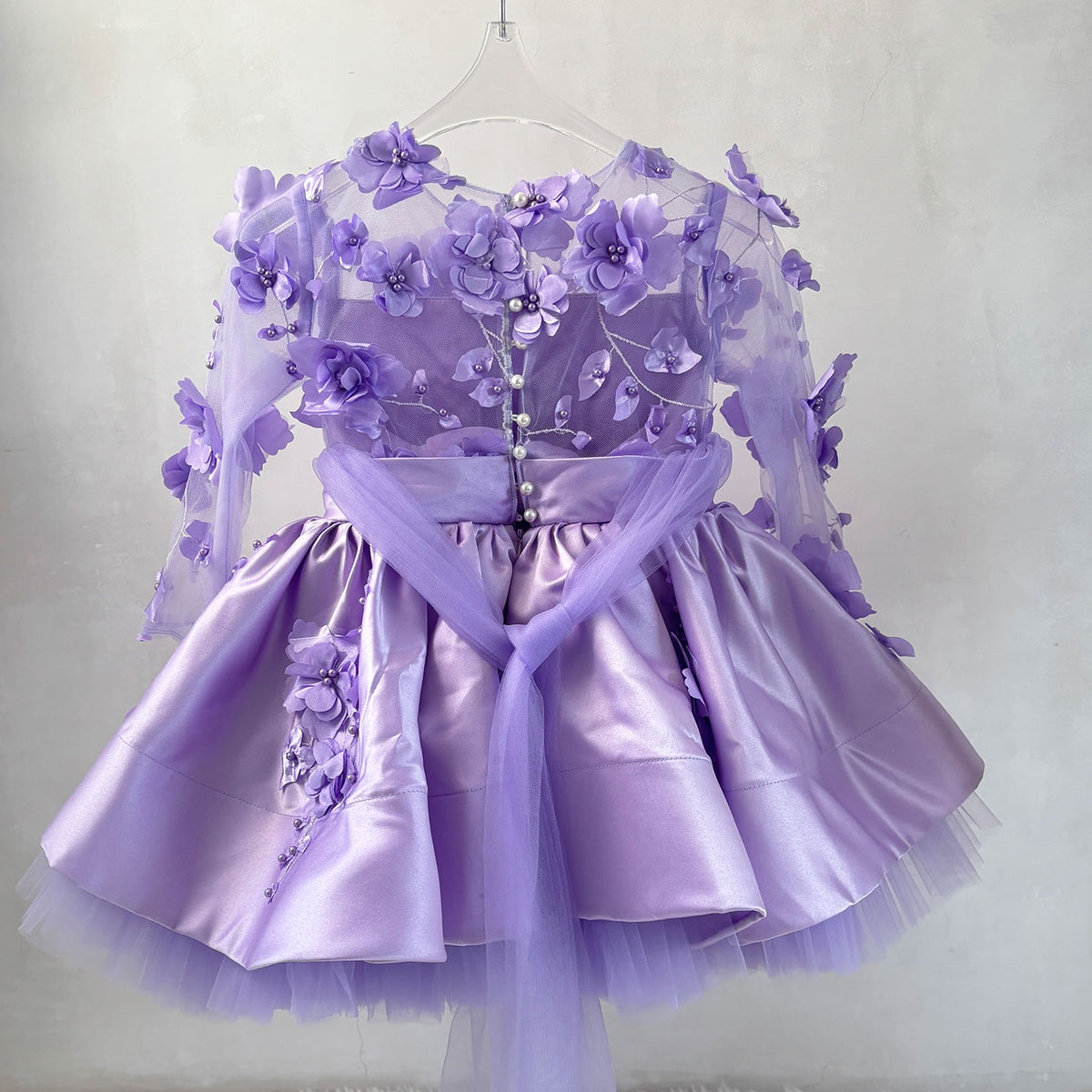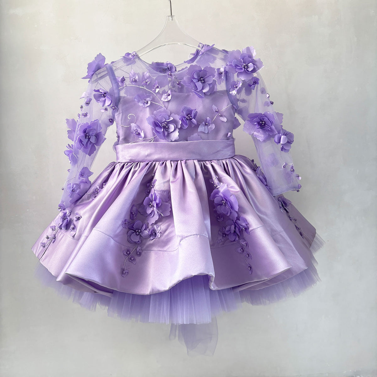 Full Appliqued Pearled Satin Tulle Flower Girl Dress J780