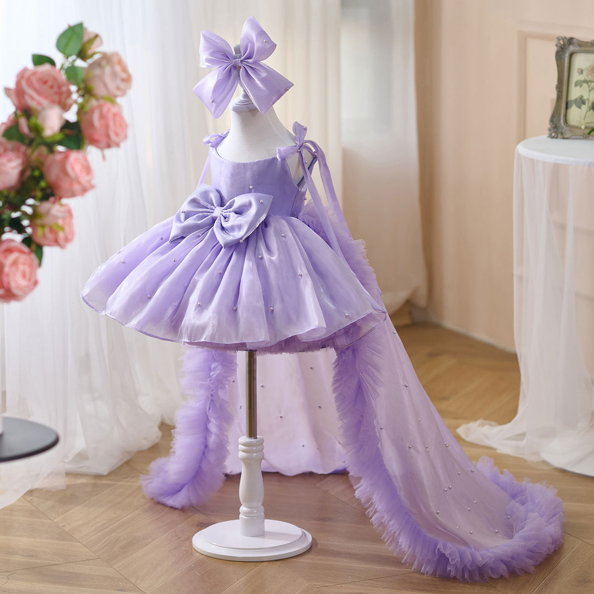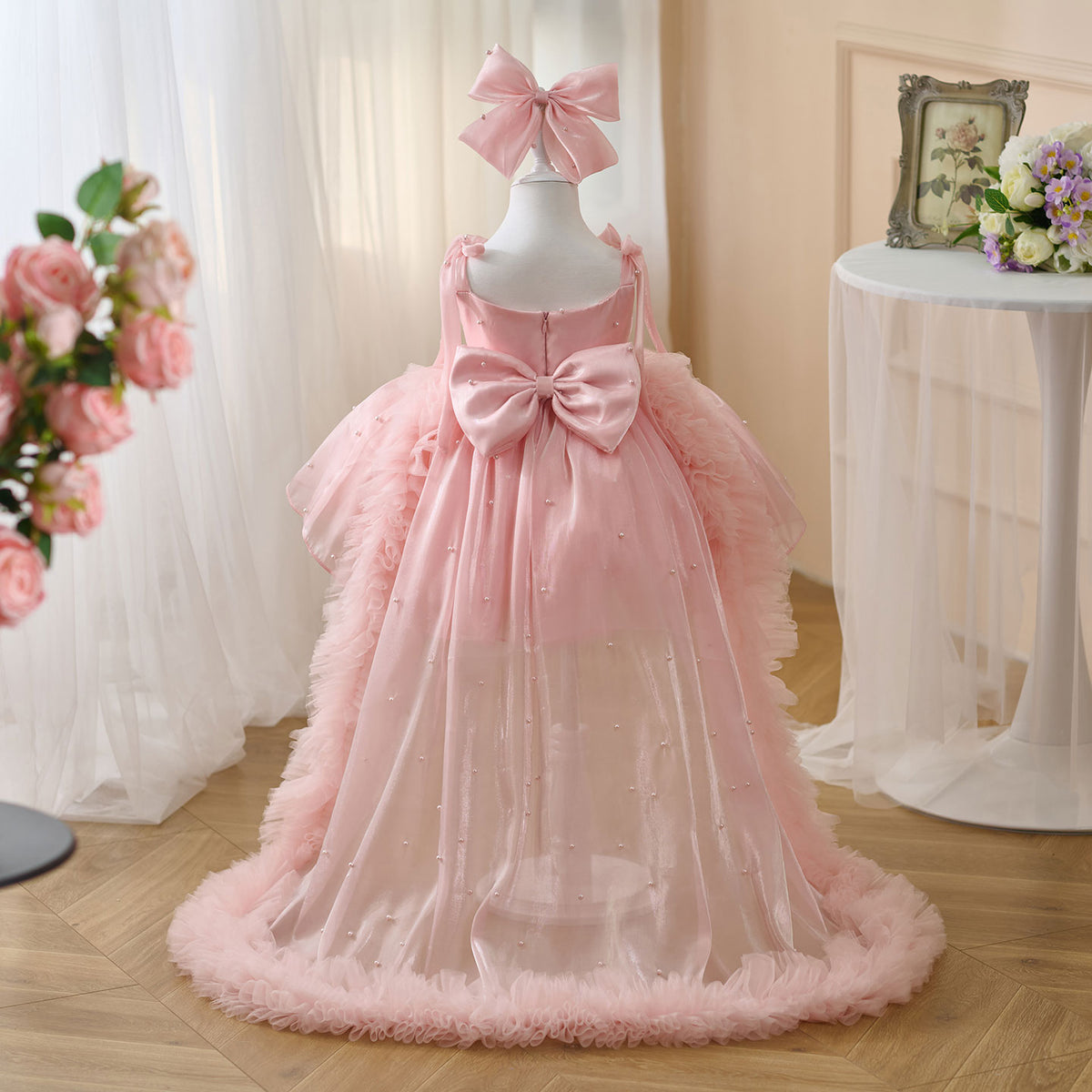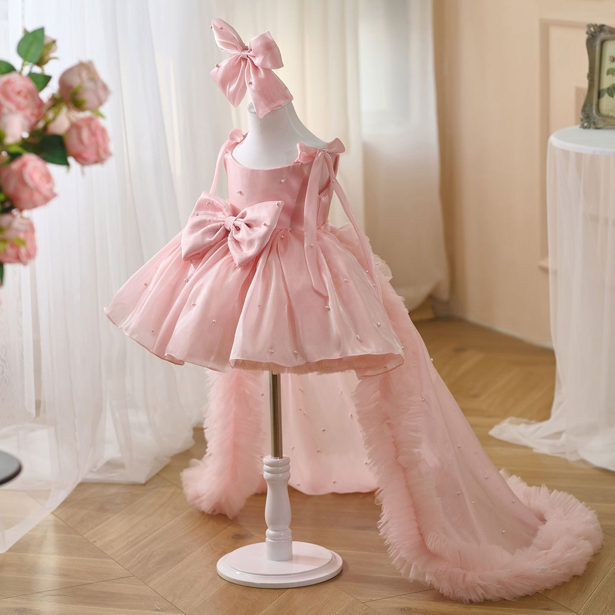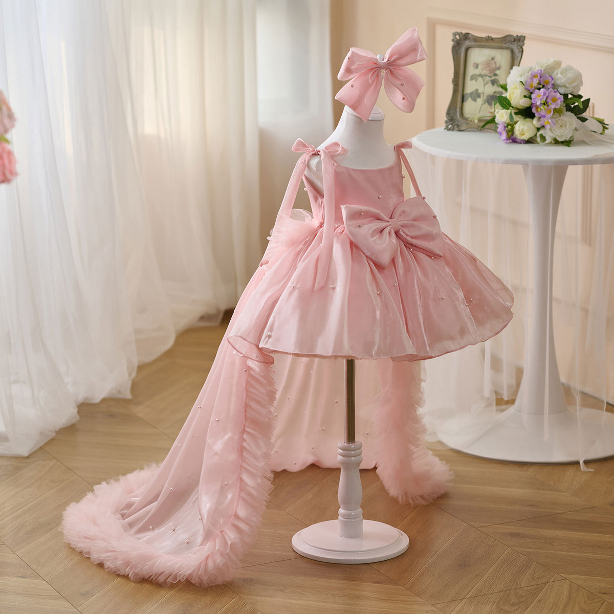 Bowed Lace Up Satin Flower Girl Dress With Trailing J546