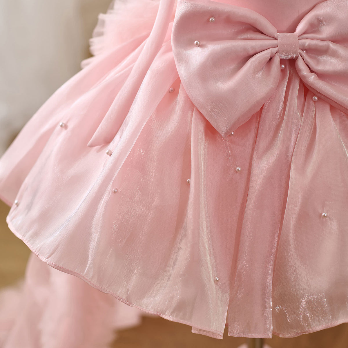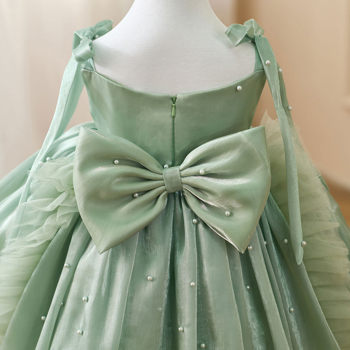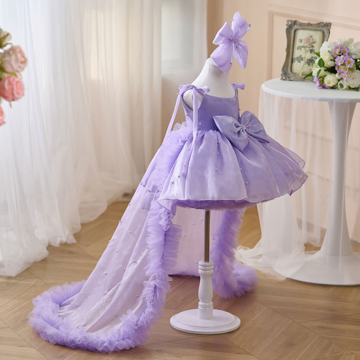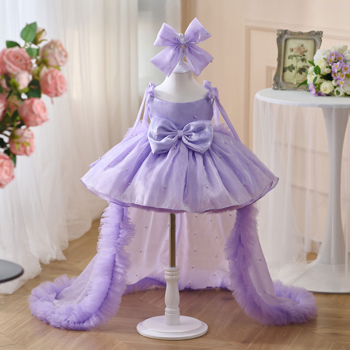 Bowed Lace Up Satin Flower Girl Dress With Trailing J546