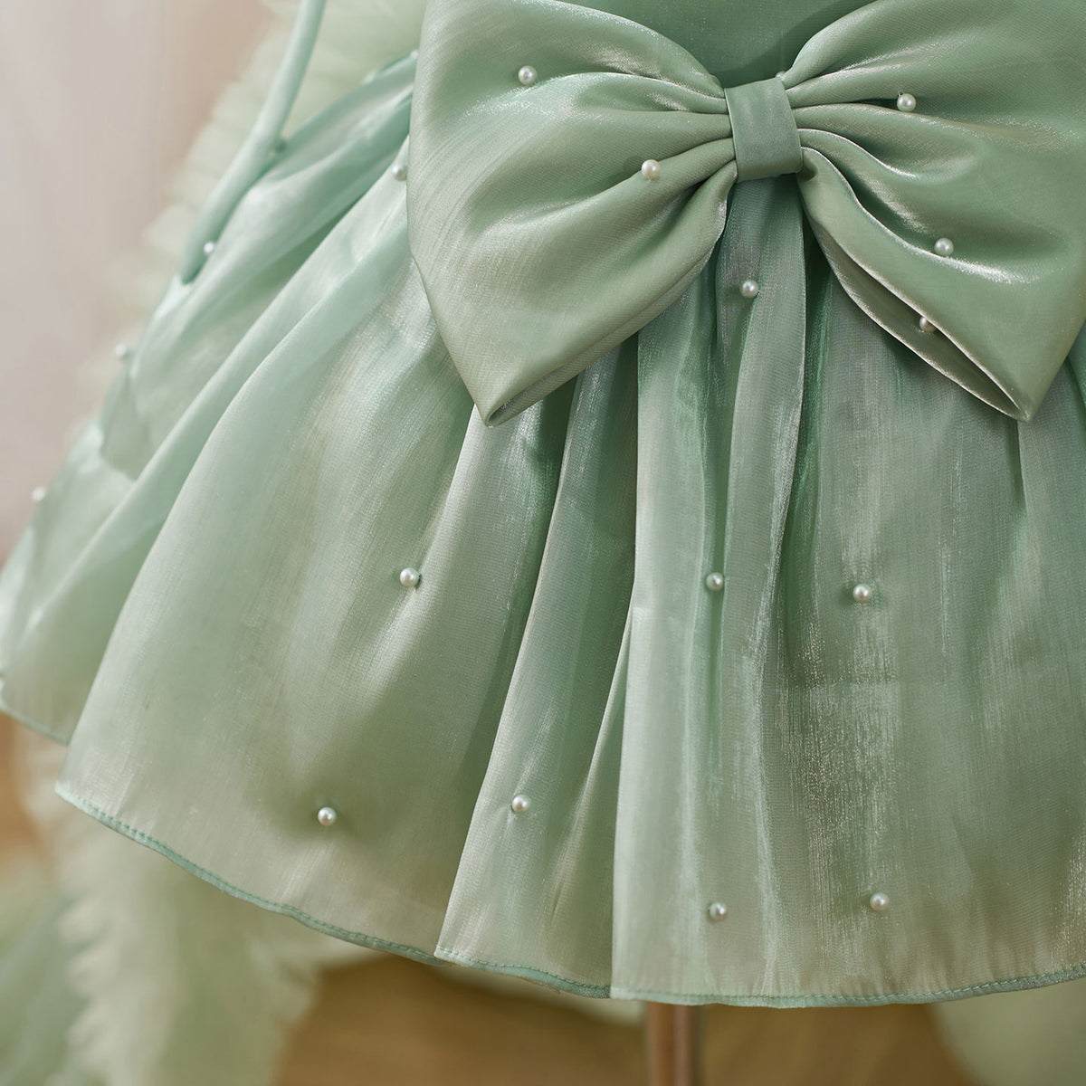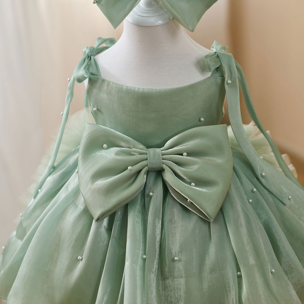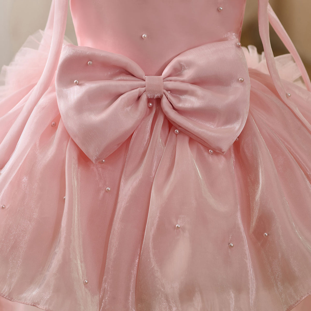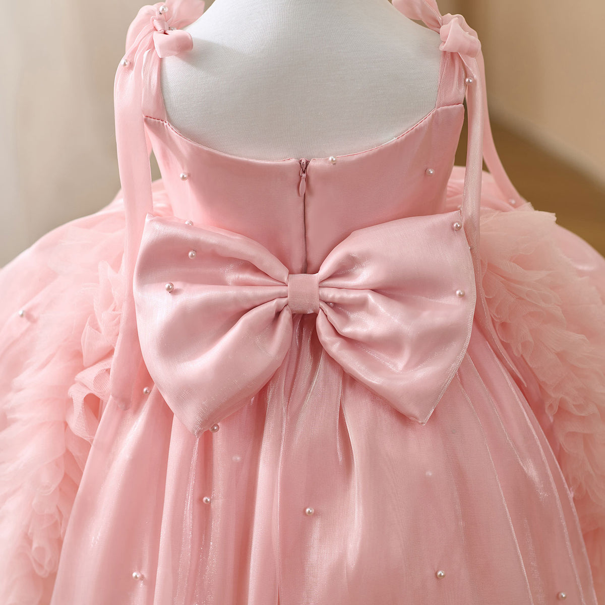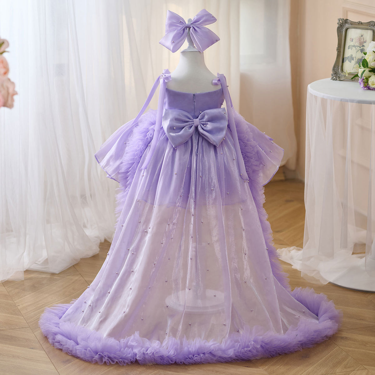Bowed Lace Up Satin Flower Girl Dress With Trailing J546