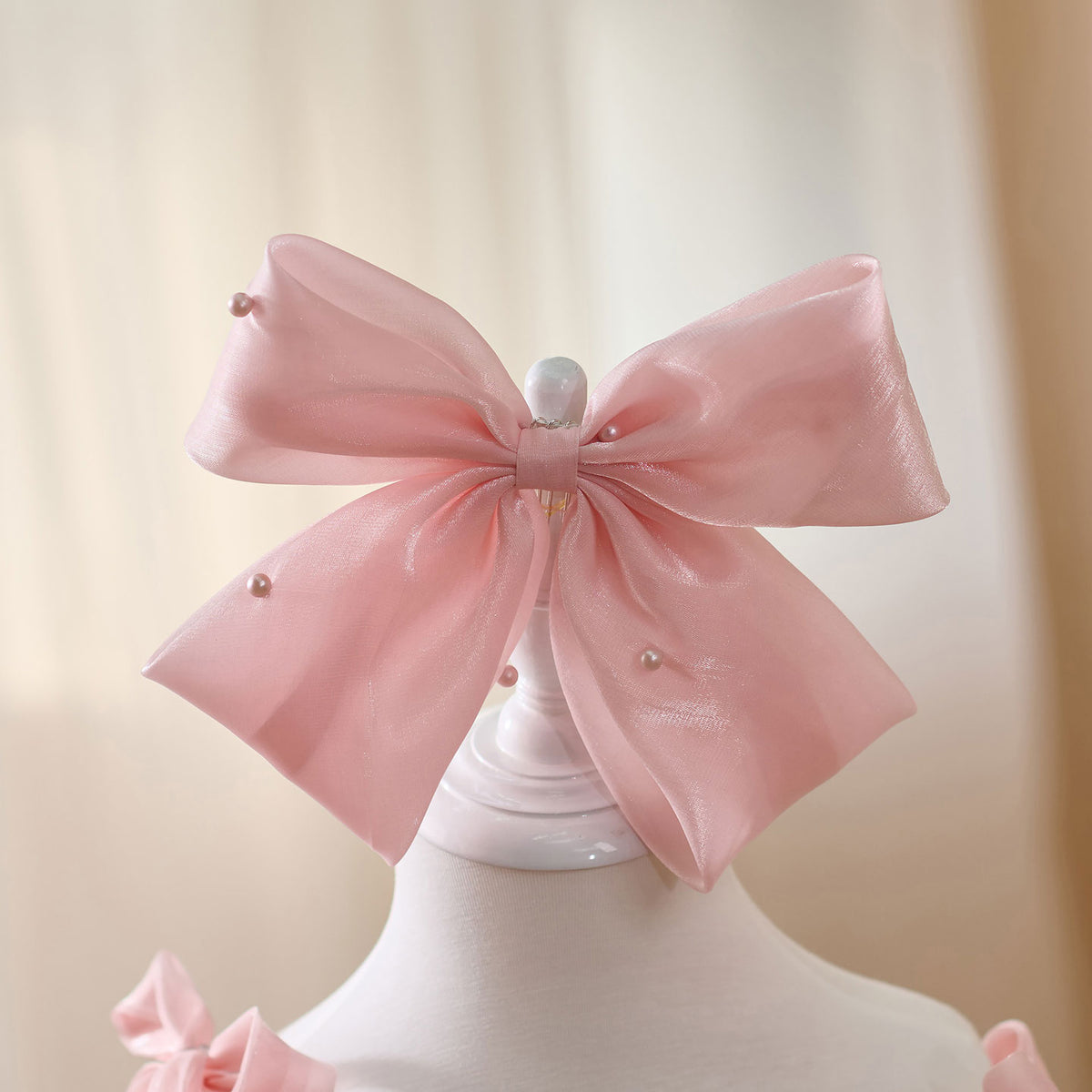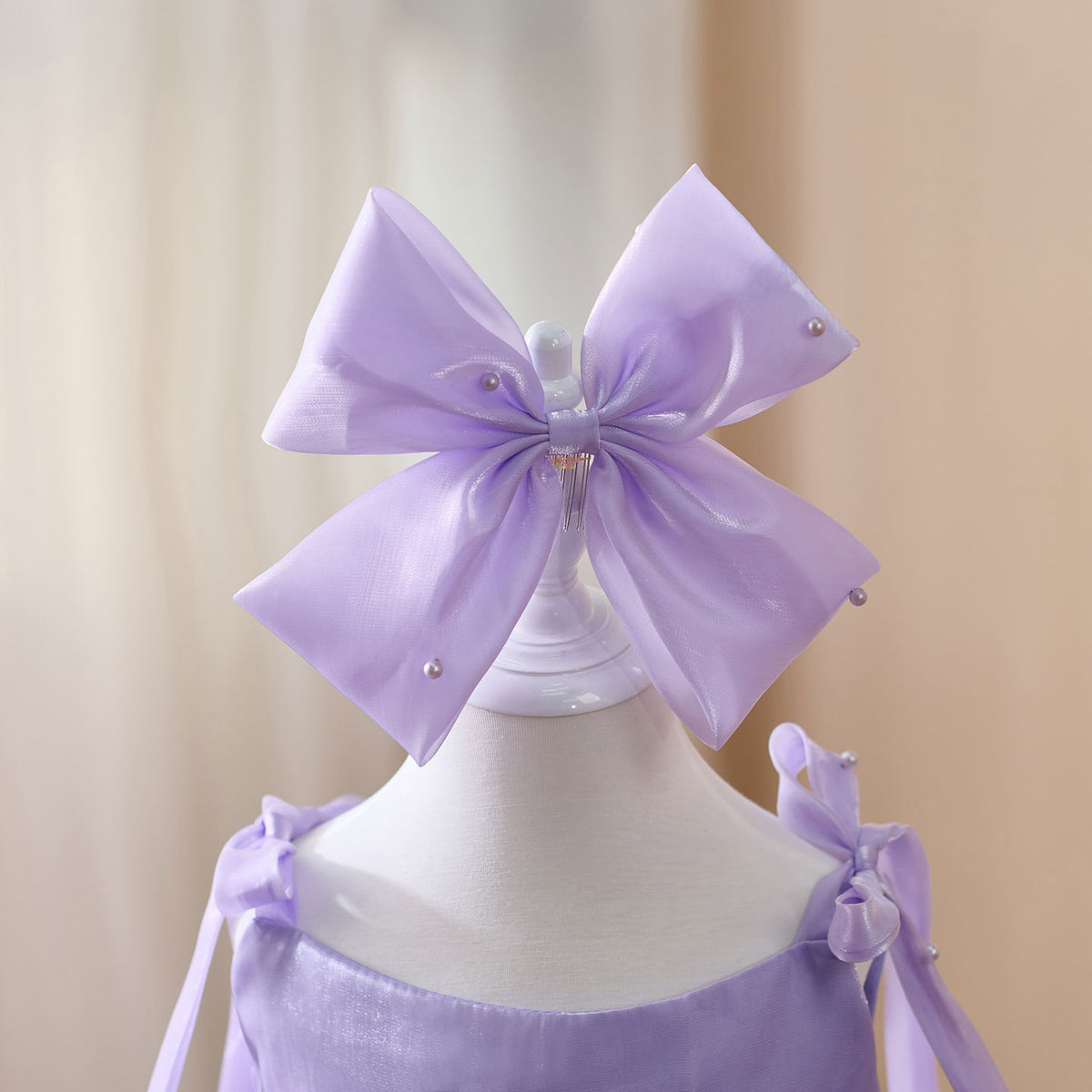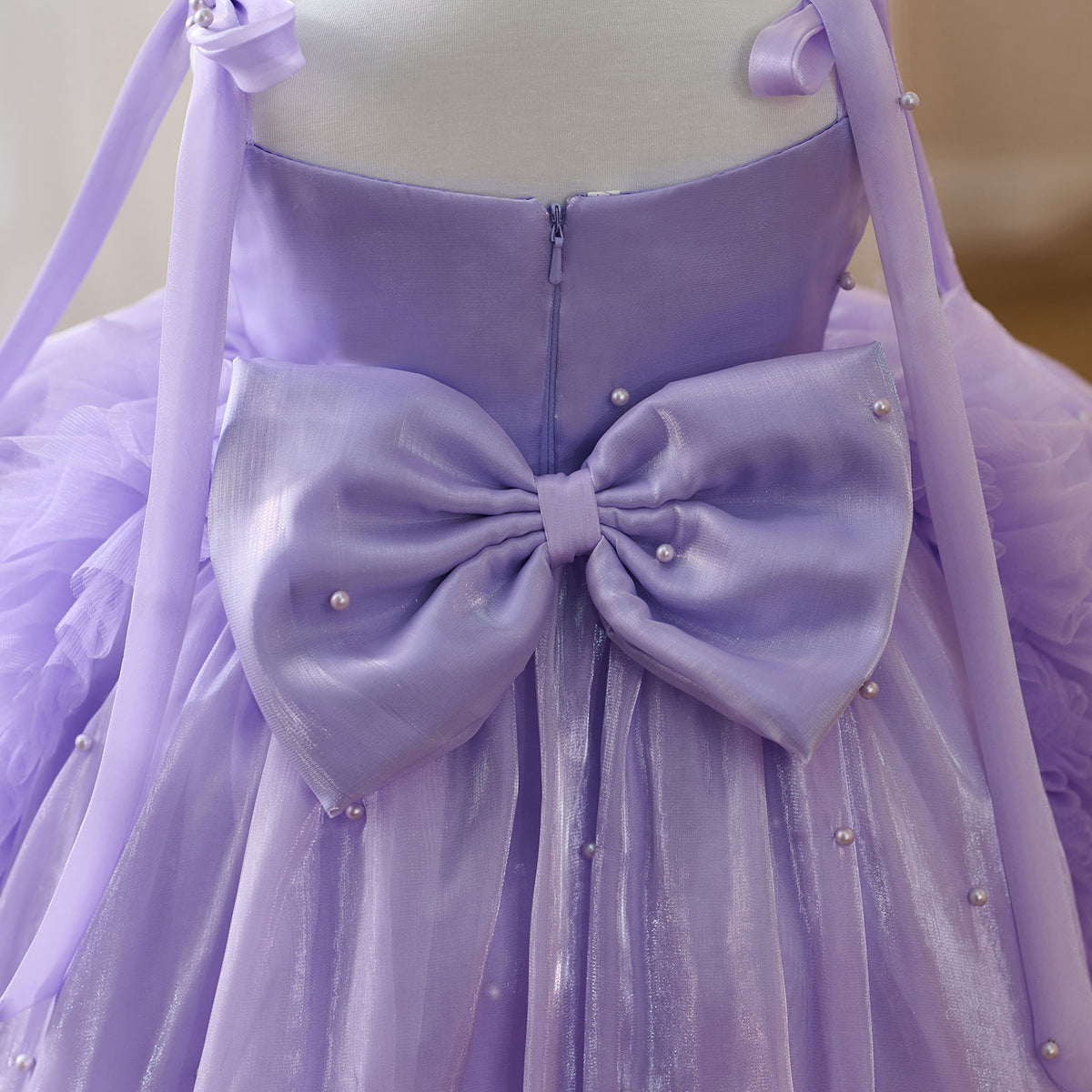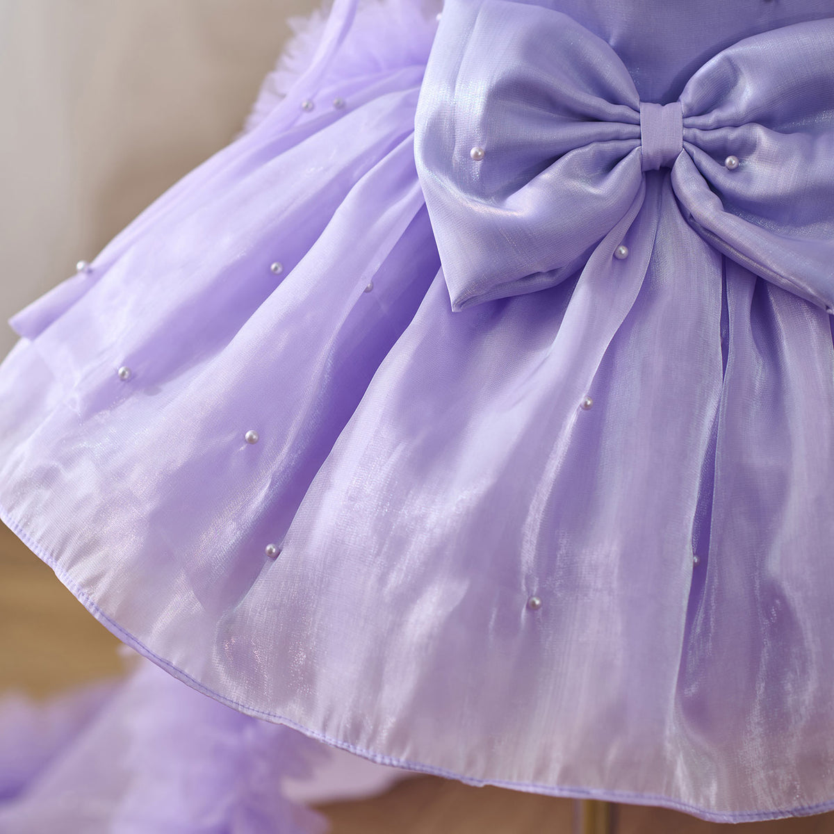 Bowed Lace Up Satin Flower Girl Dress With Trailing J546
