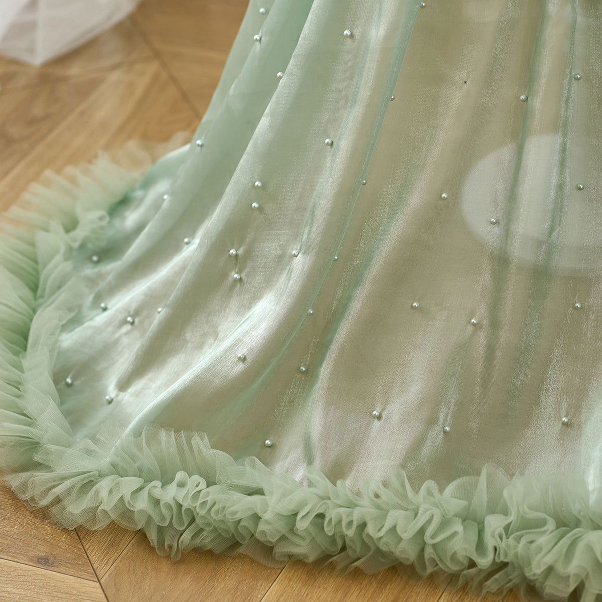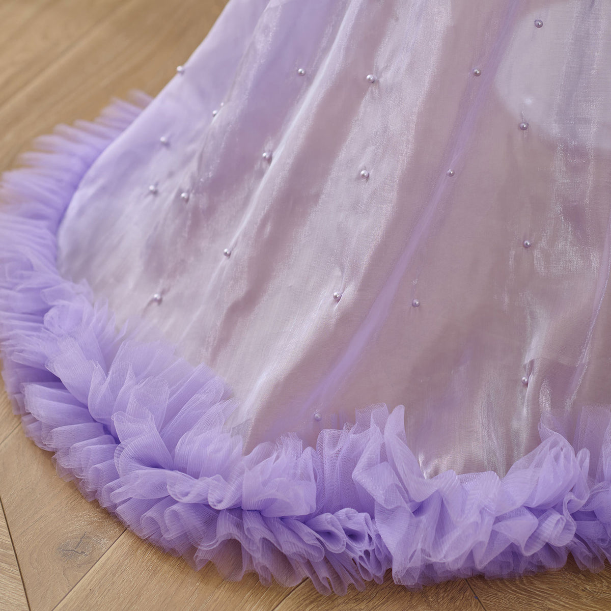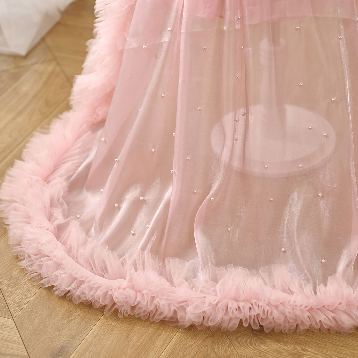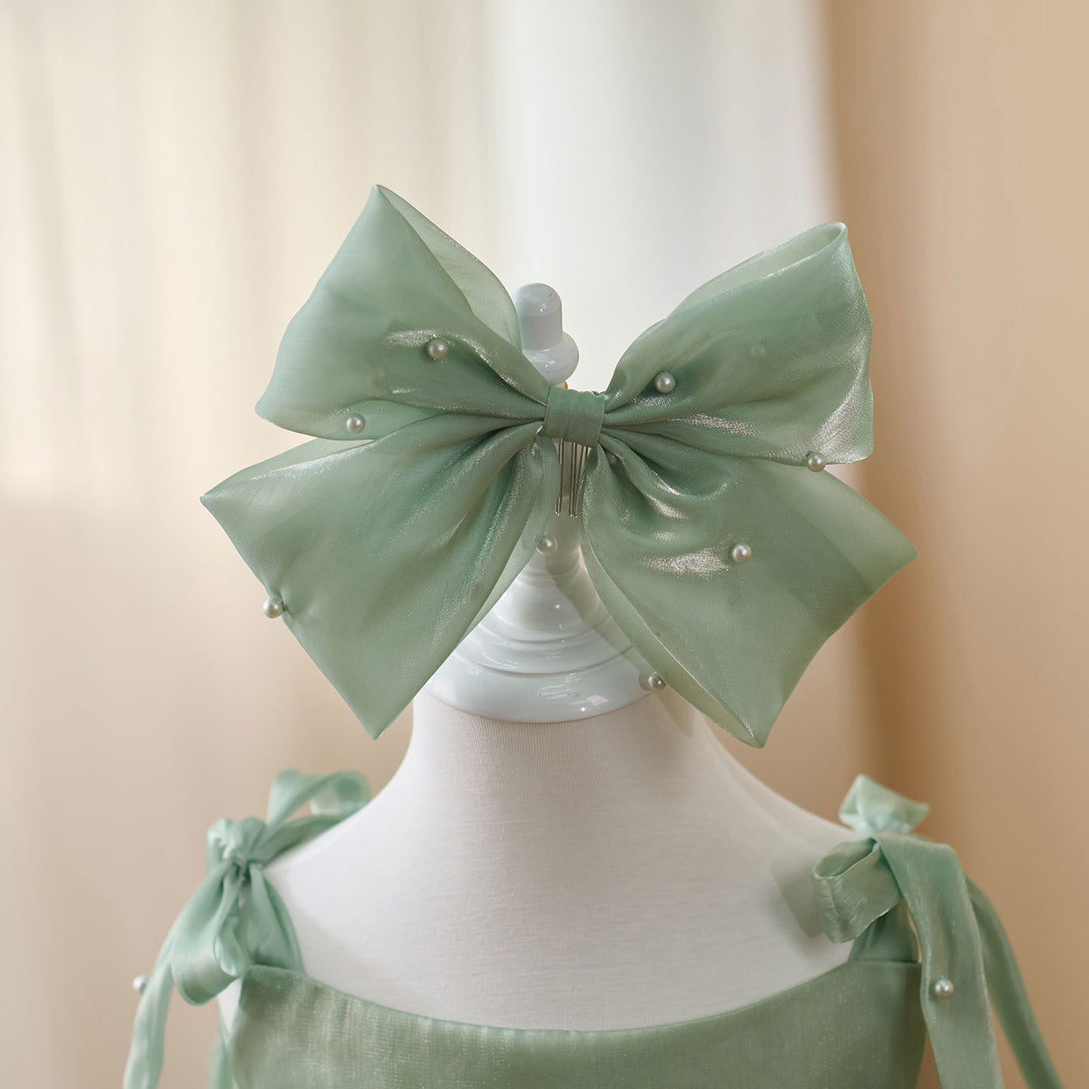Bowed Lace Up Satin Flower Girl Dress With Trailing J546