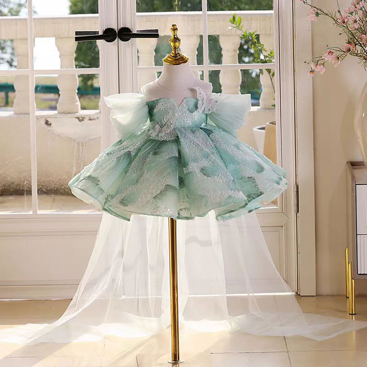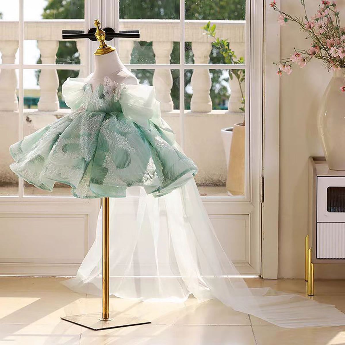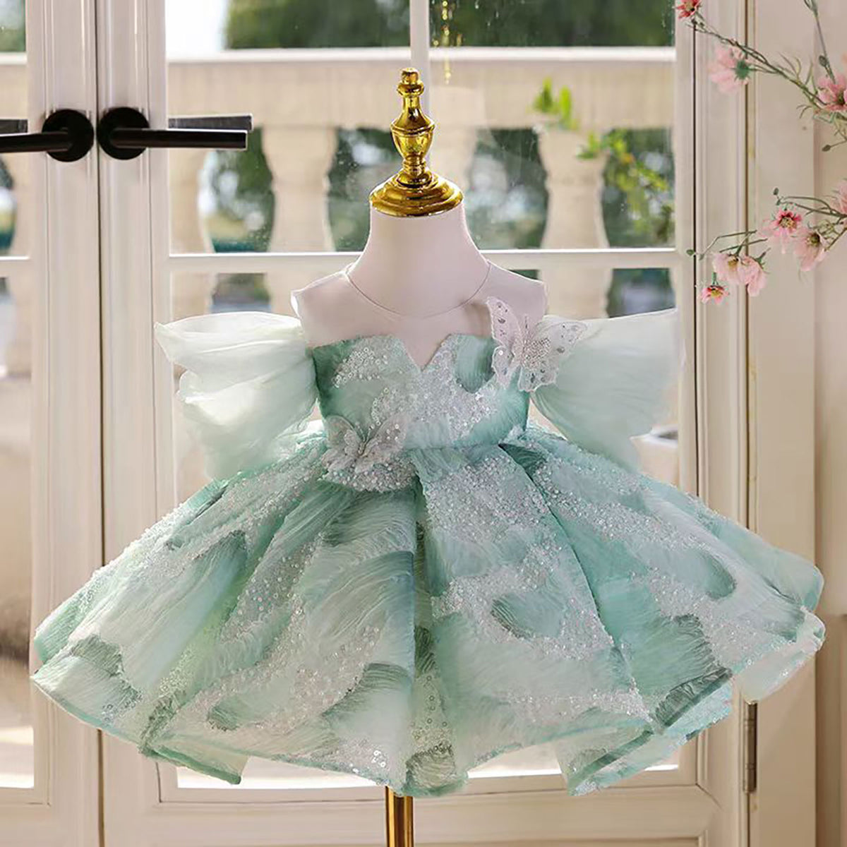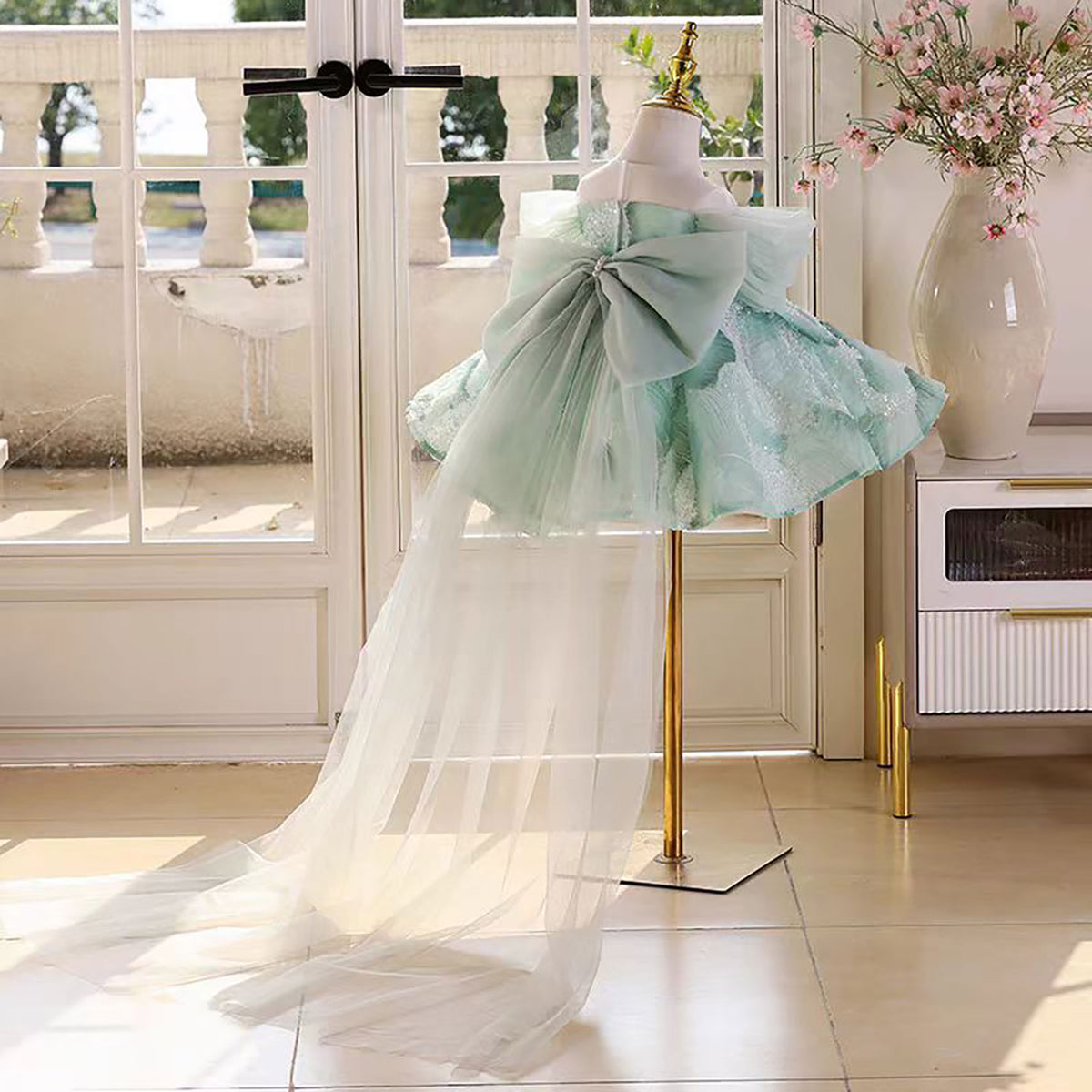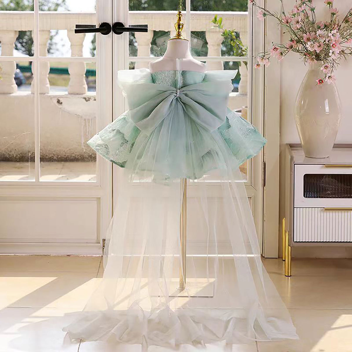 Off-Shoulder Butterfly Decoration Flower Girl Dress With Bow D050