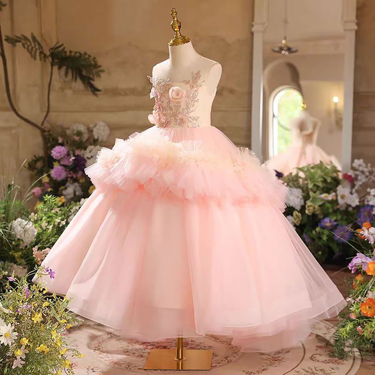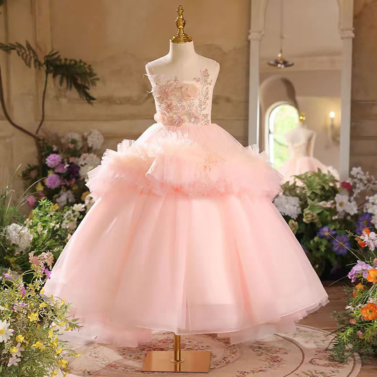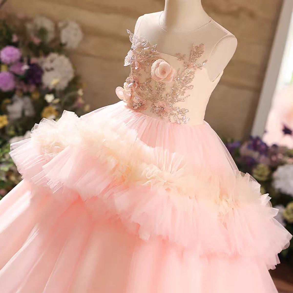 Sleeveless Sequined Flower Girl Dress With Trailing D042