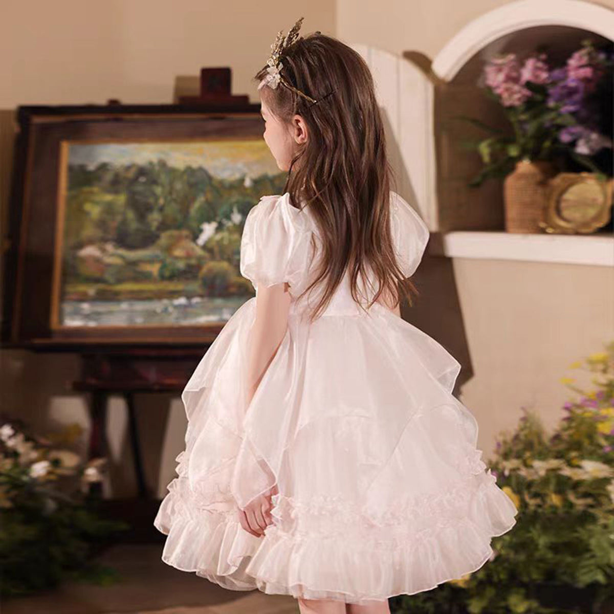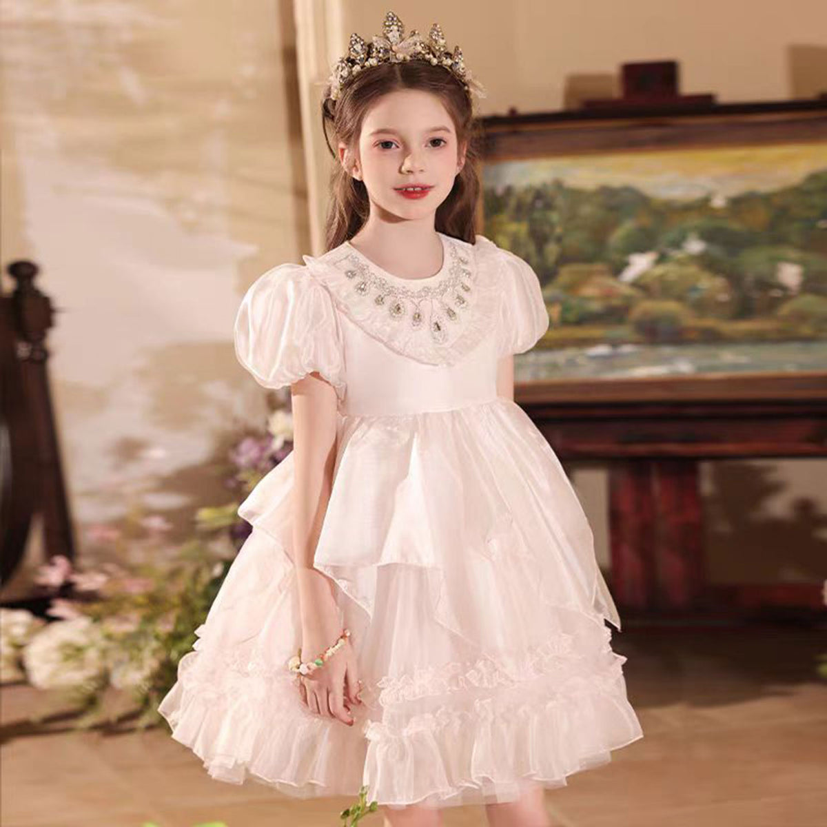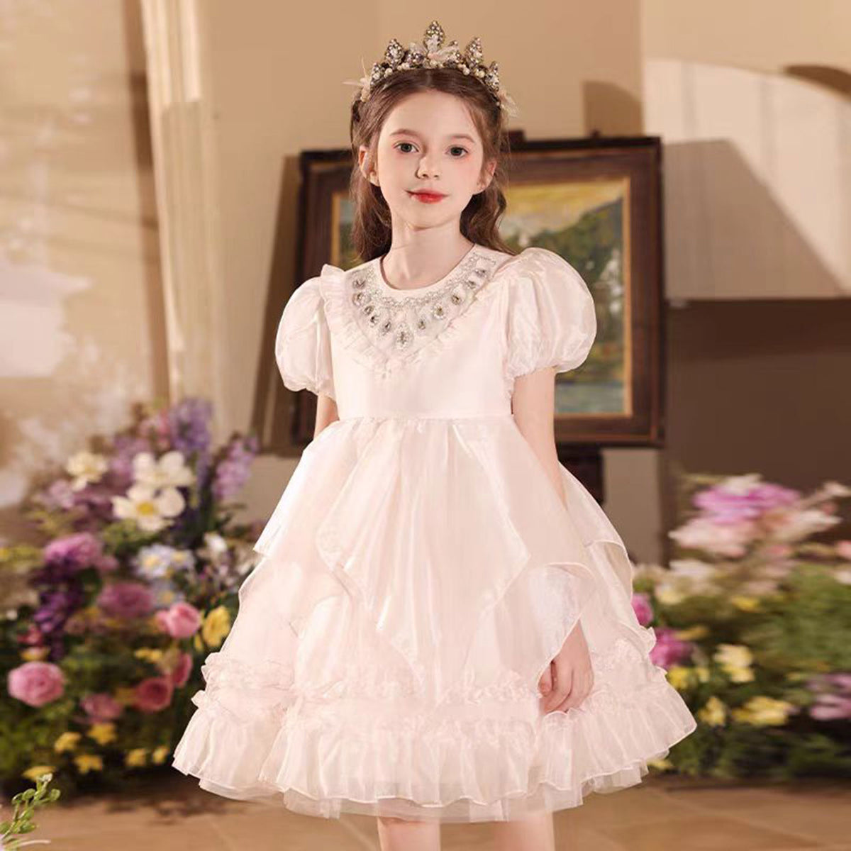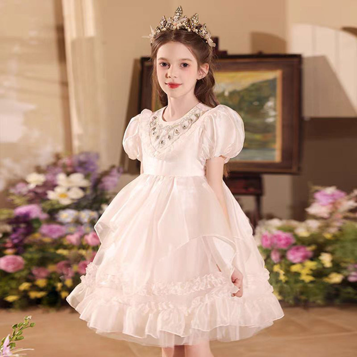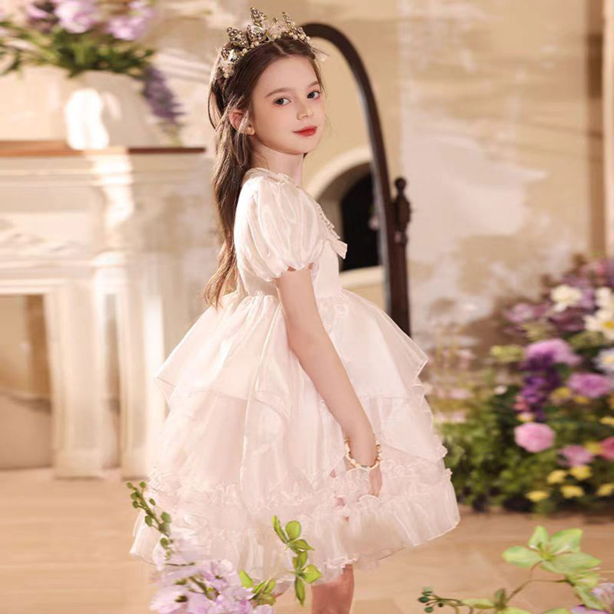 Charming O-Neck Lace Tulle Girl Princess Dress White J520