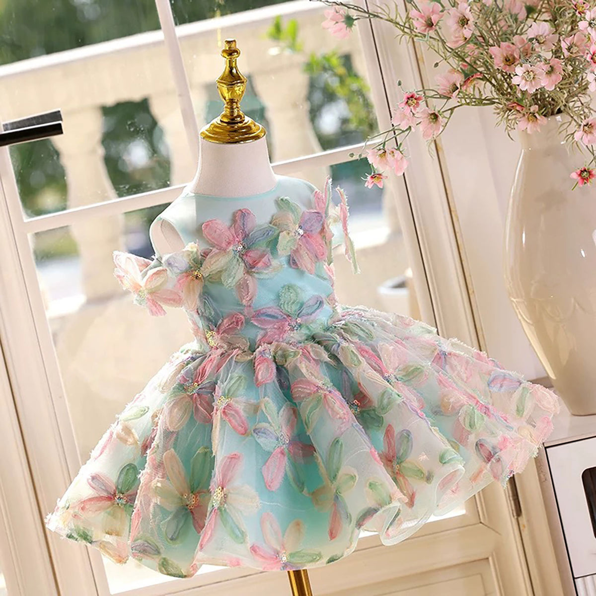 Off-Shoulder Applique Dubai Flower Girl Dress Turquoise D070