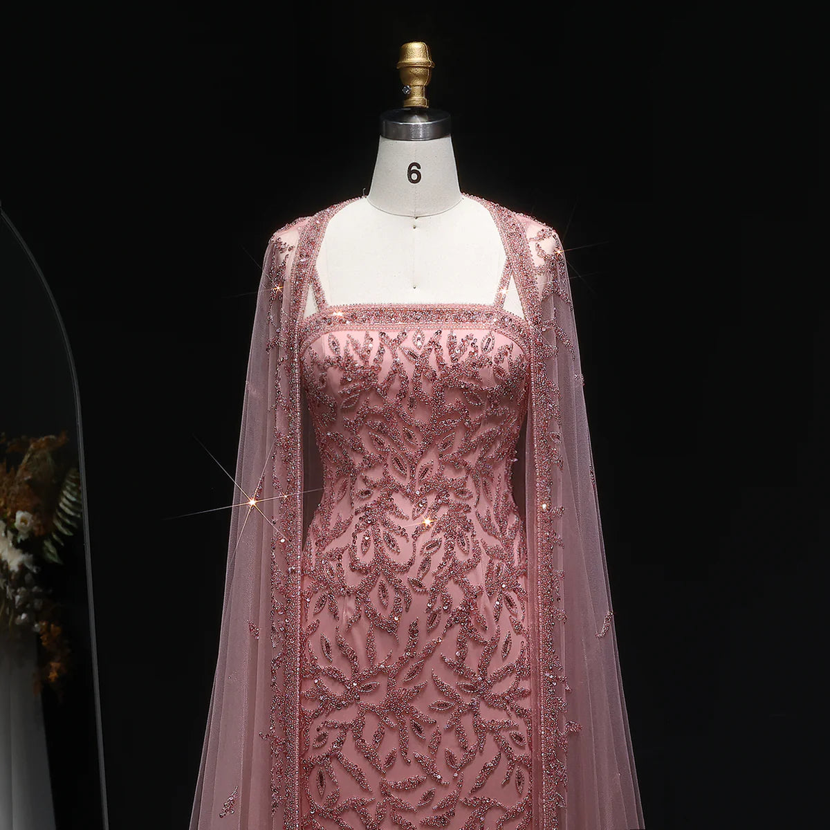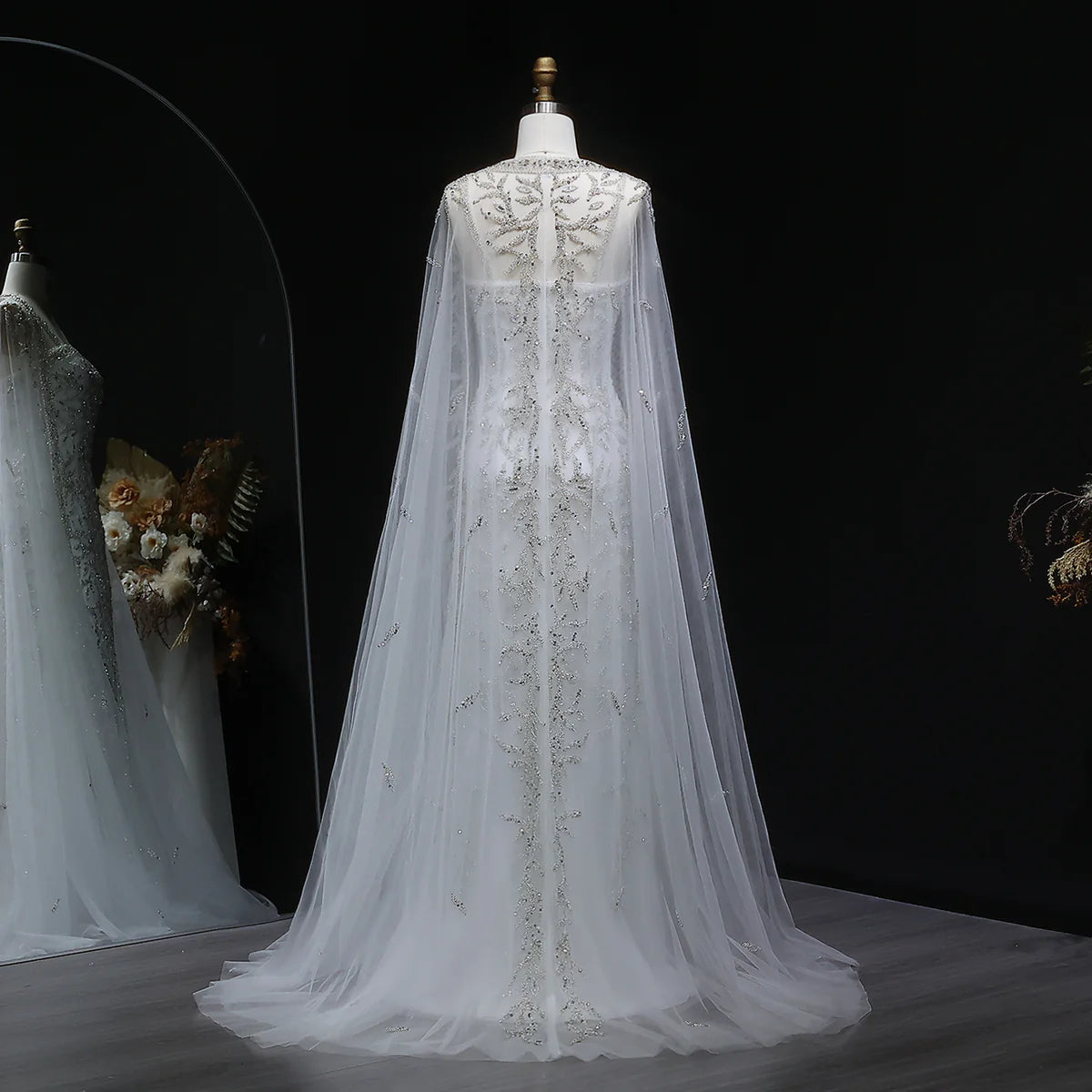 Glamorous Beaded Evening Dress with Sheer Overlay Cape SS393