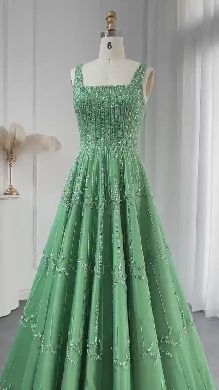 Luxury Beaded Green Spaghetti Evening Dresses SS225
