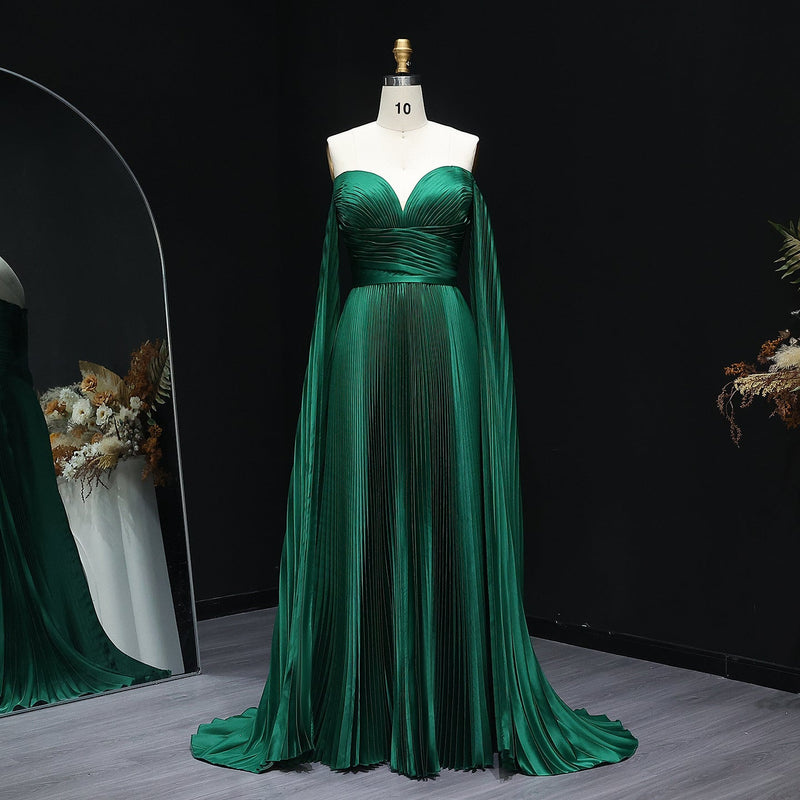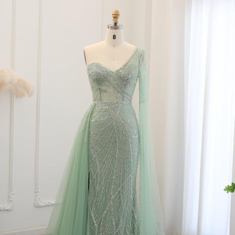 Luxury One Shoulder Green Evening Dress with Cape Sleeve SS054