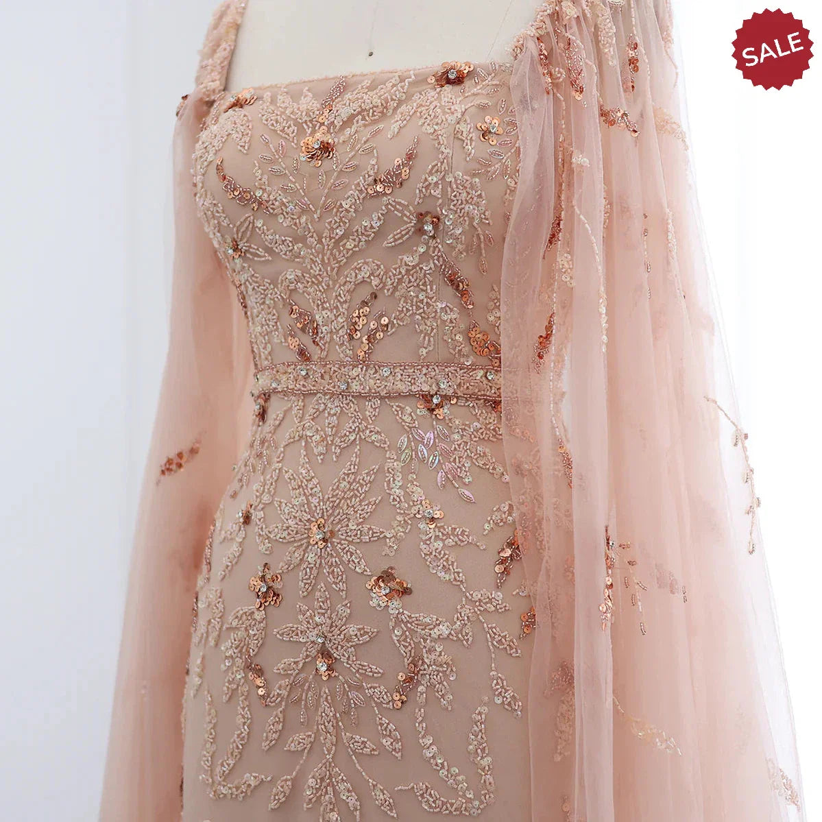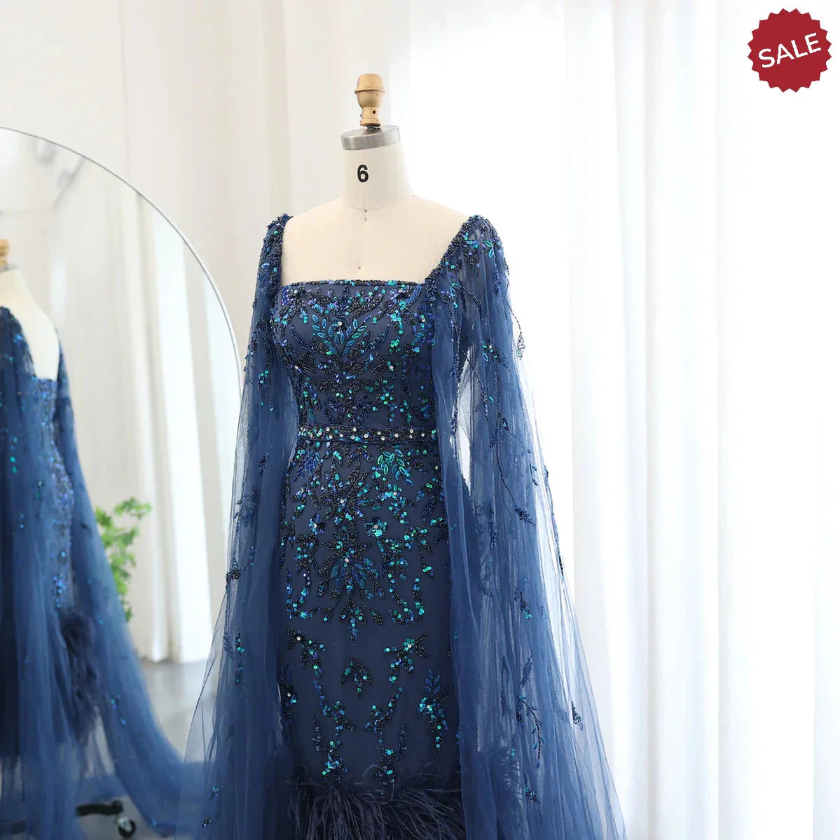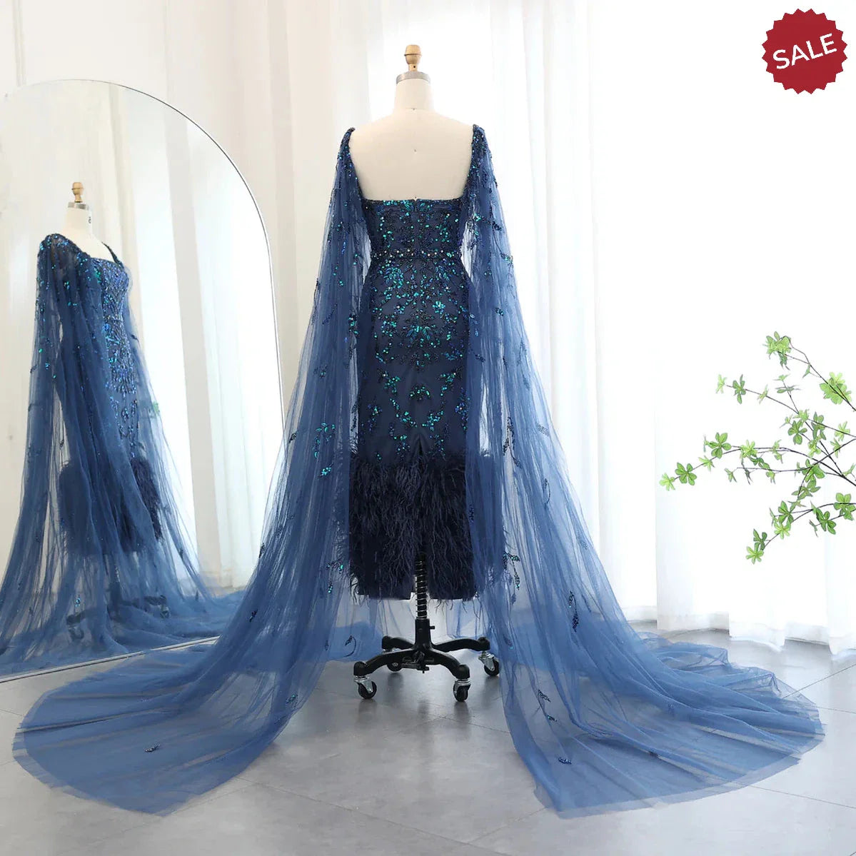 Dubai Luxury Feathers Lilac Evening Dress with Cape Sleeves SS381