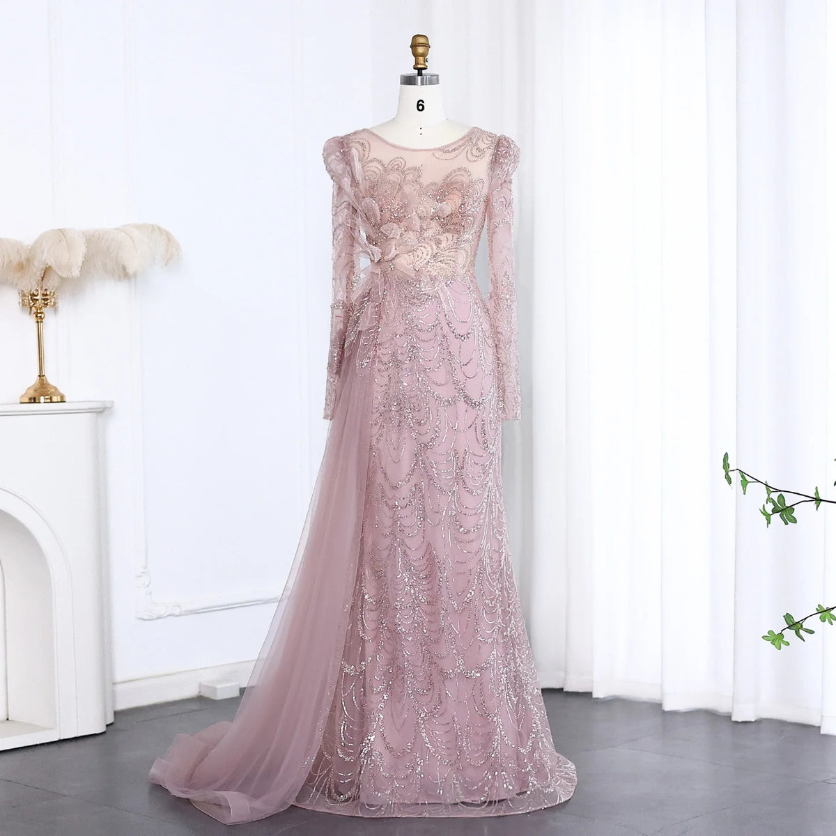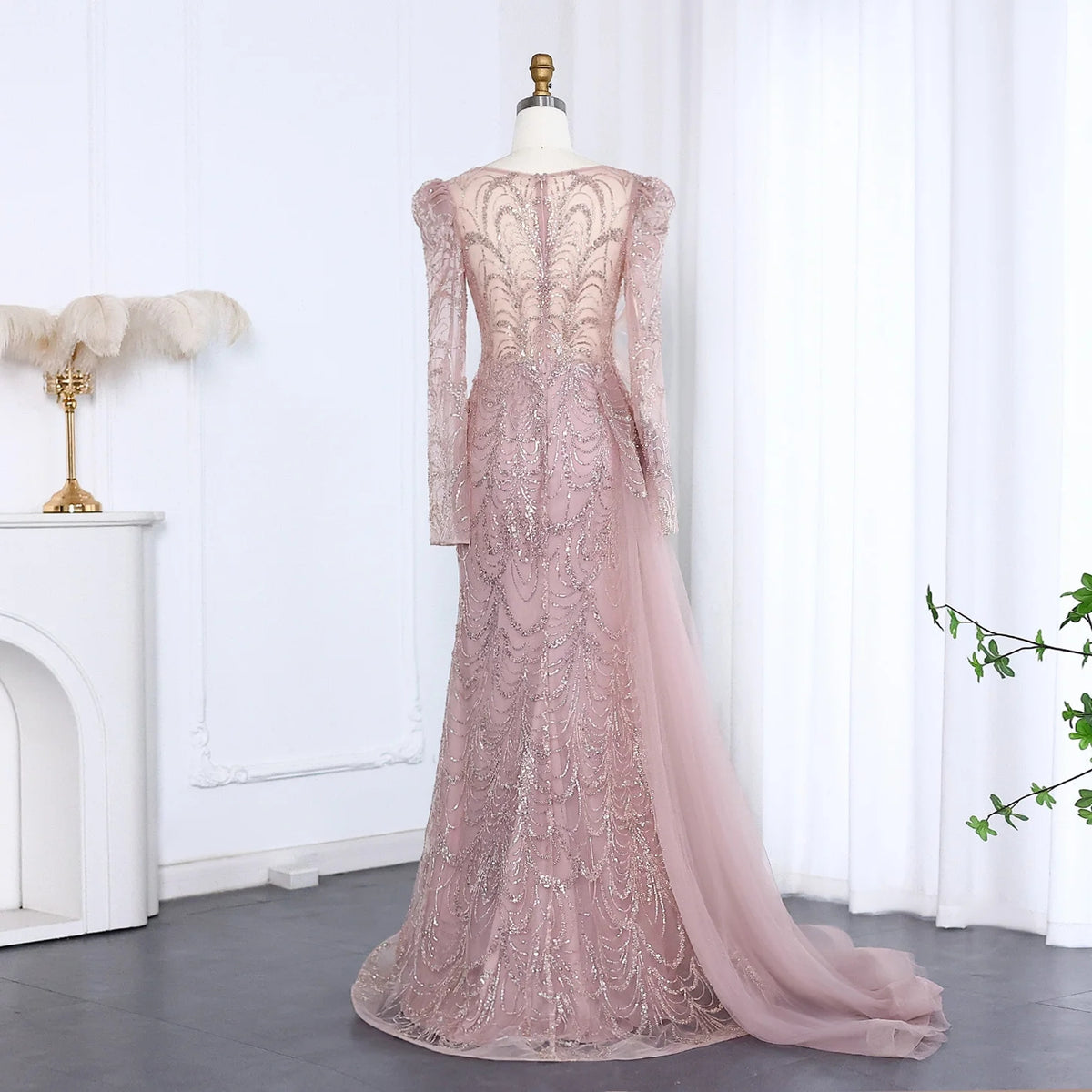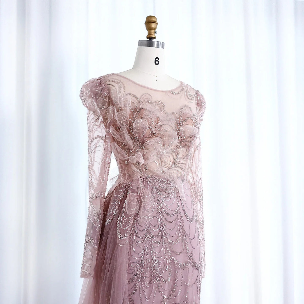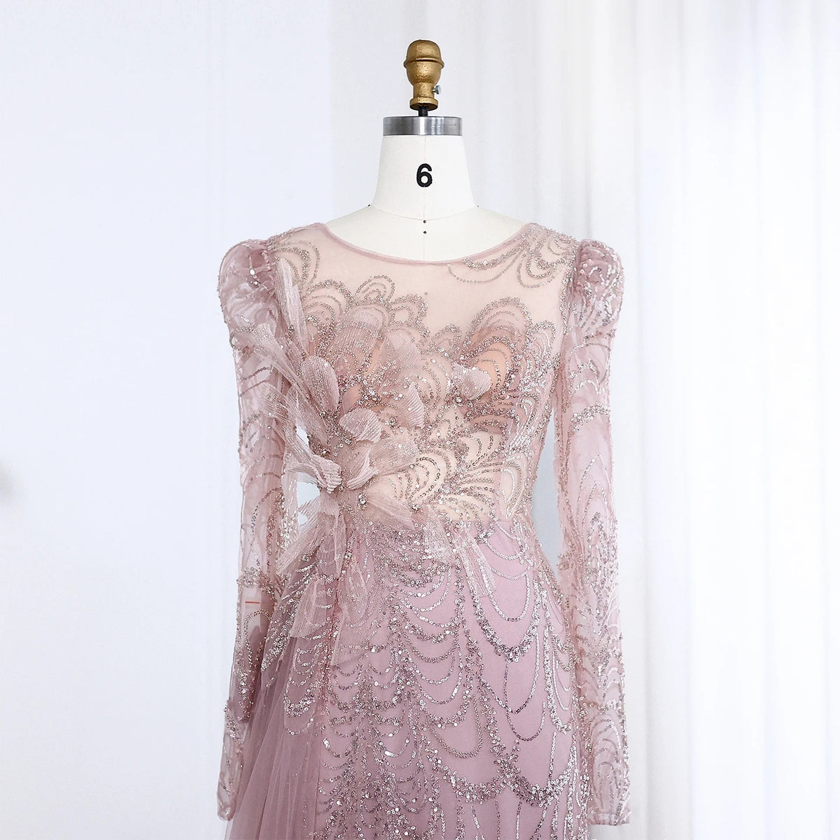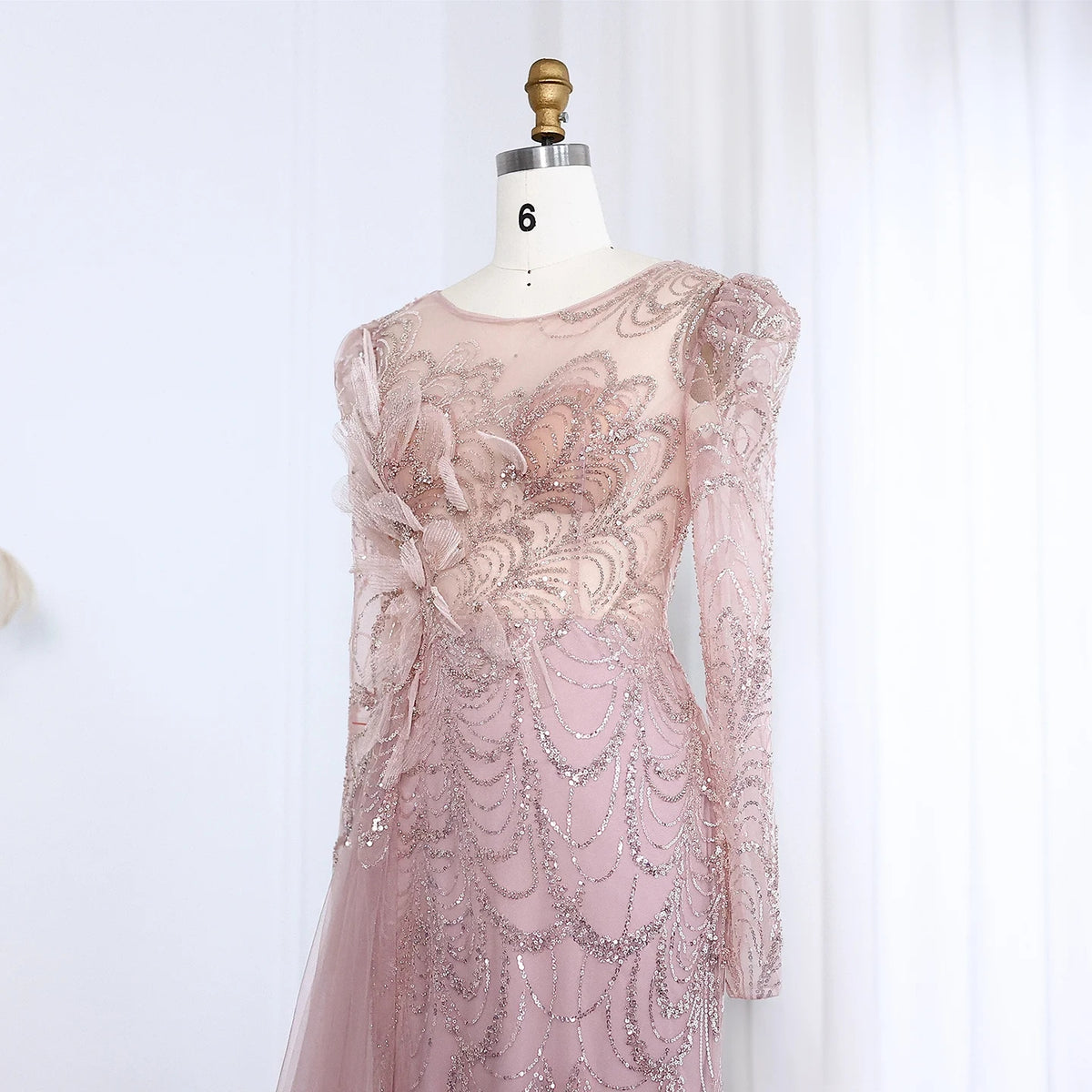 Elegant Long Sleeves Mermaid Pink Evening Dress SS084