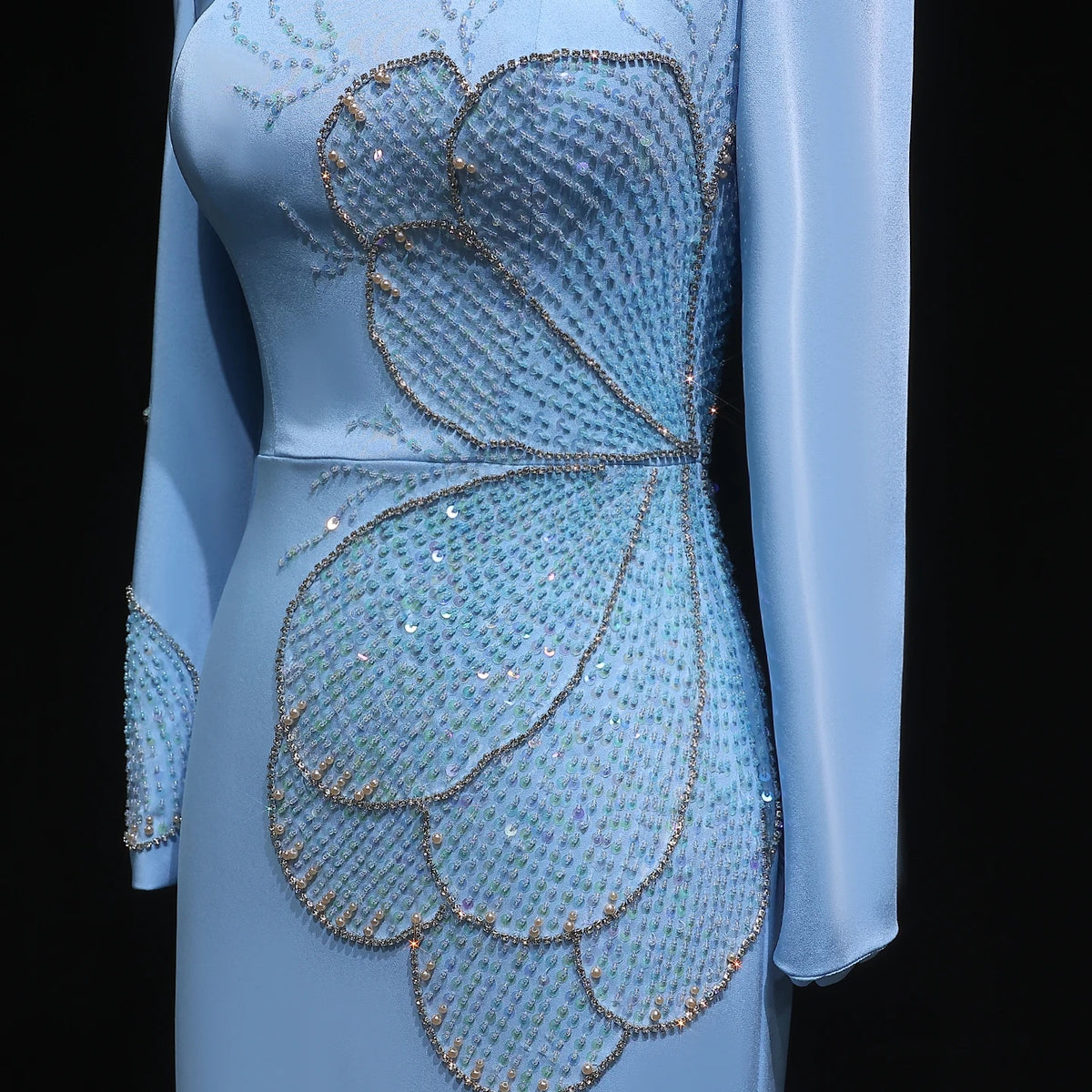 This Elegant Pink Beaded Evening Dress with Long Sleeves SS262 is a stunning addition to any wardrobe. Featuring intricate beading and long sleeves, this dress exudes elegance and sophistication. Perfect for any formal event, you'll feel confident and beautiful in this timeless piece.