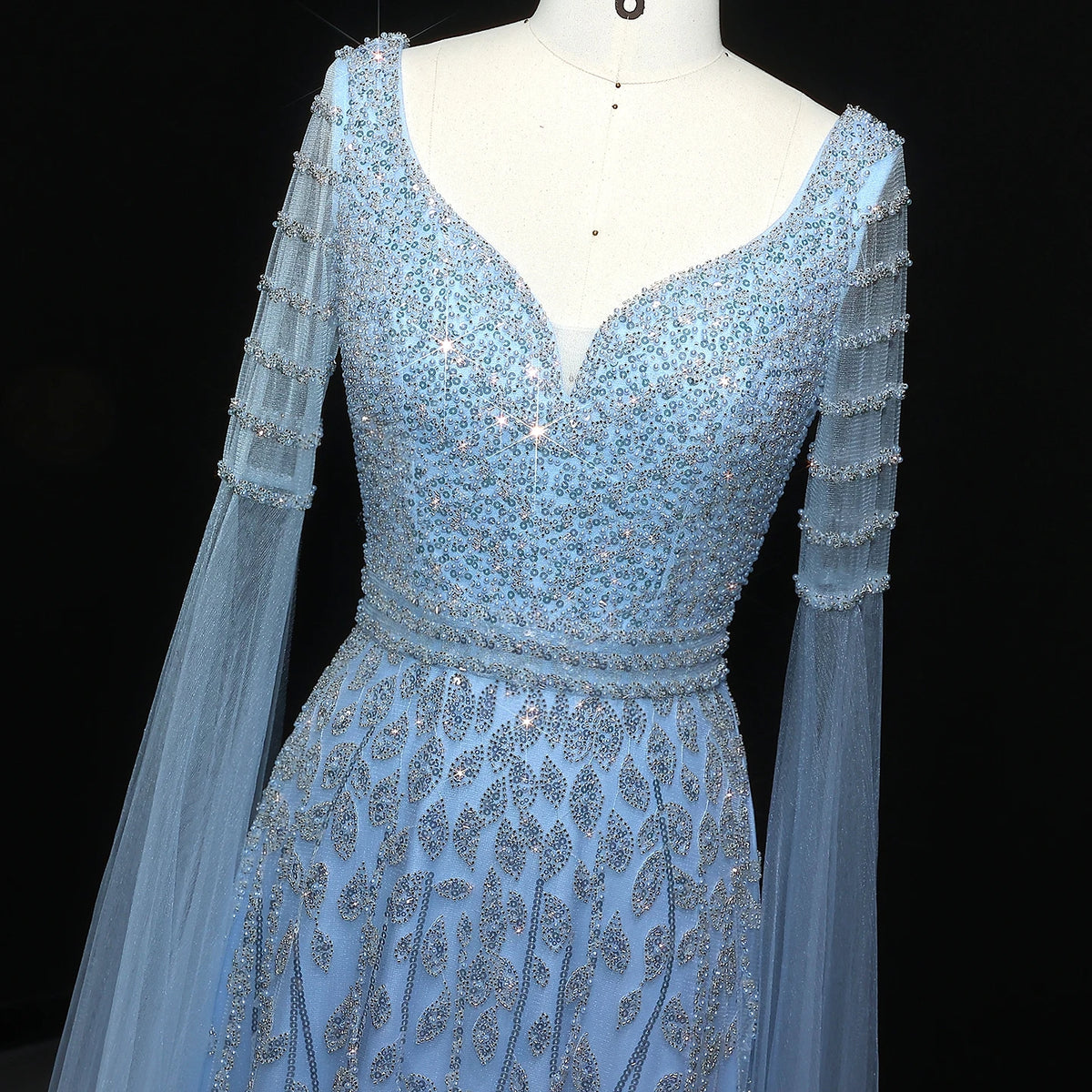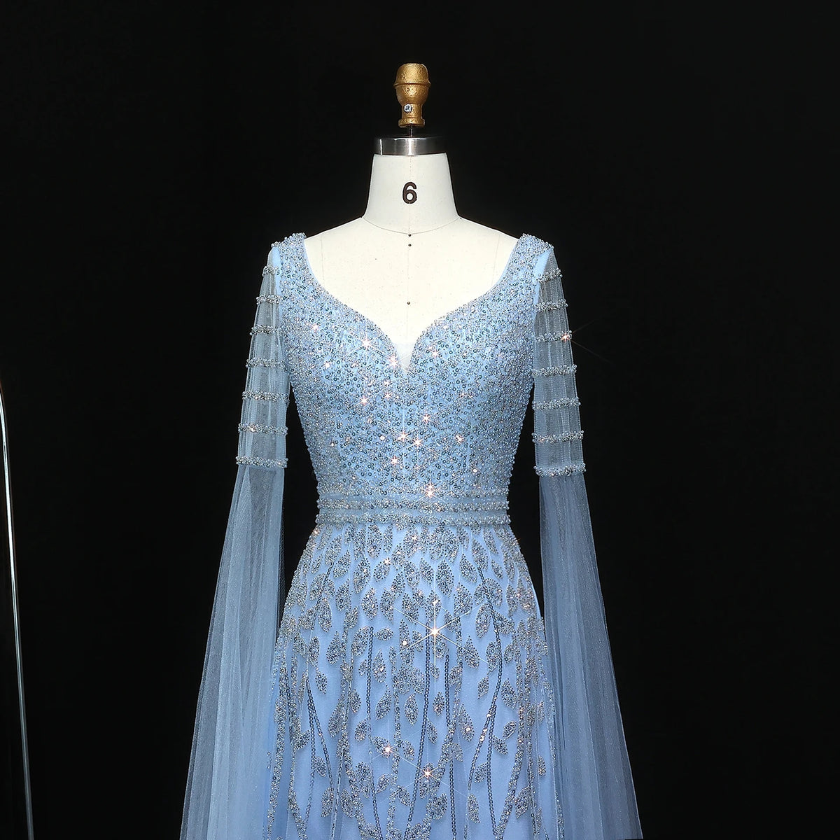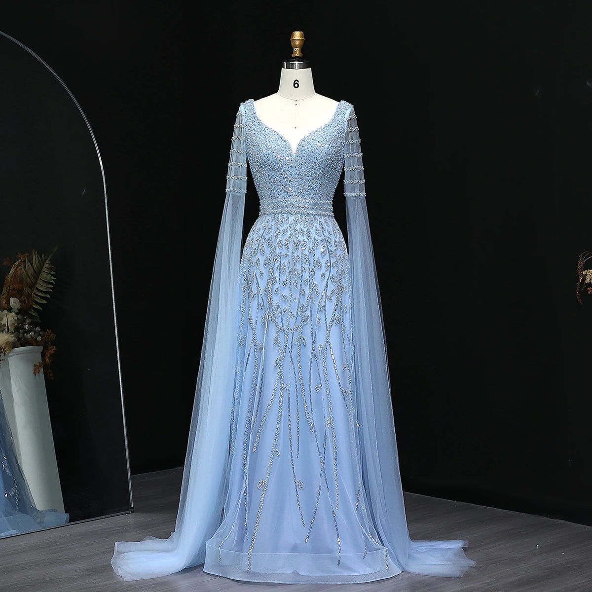 Expertly crafted, this Elegant Pink Beaded Evening Gown with Cape Sleeves SS034 exudes class and sophistication. The intricate beading and flowing cape sleeves add a touch of elegance, while the flattering fit accentuates your figure. Perfect for formal occasions, this gown is sure to make you stand out in a sea of gowns.