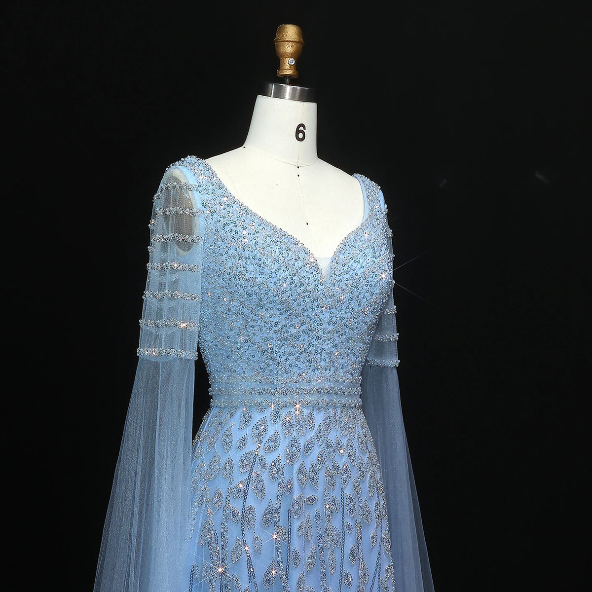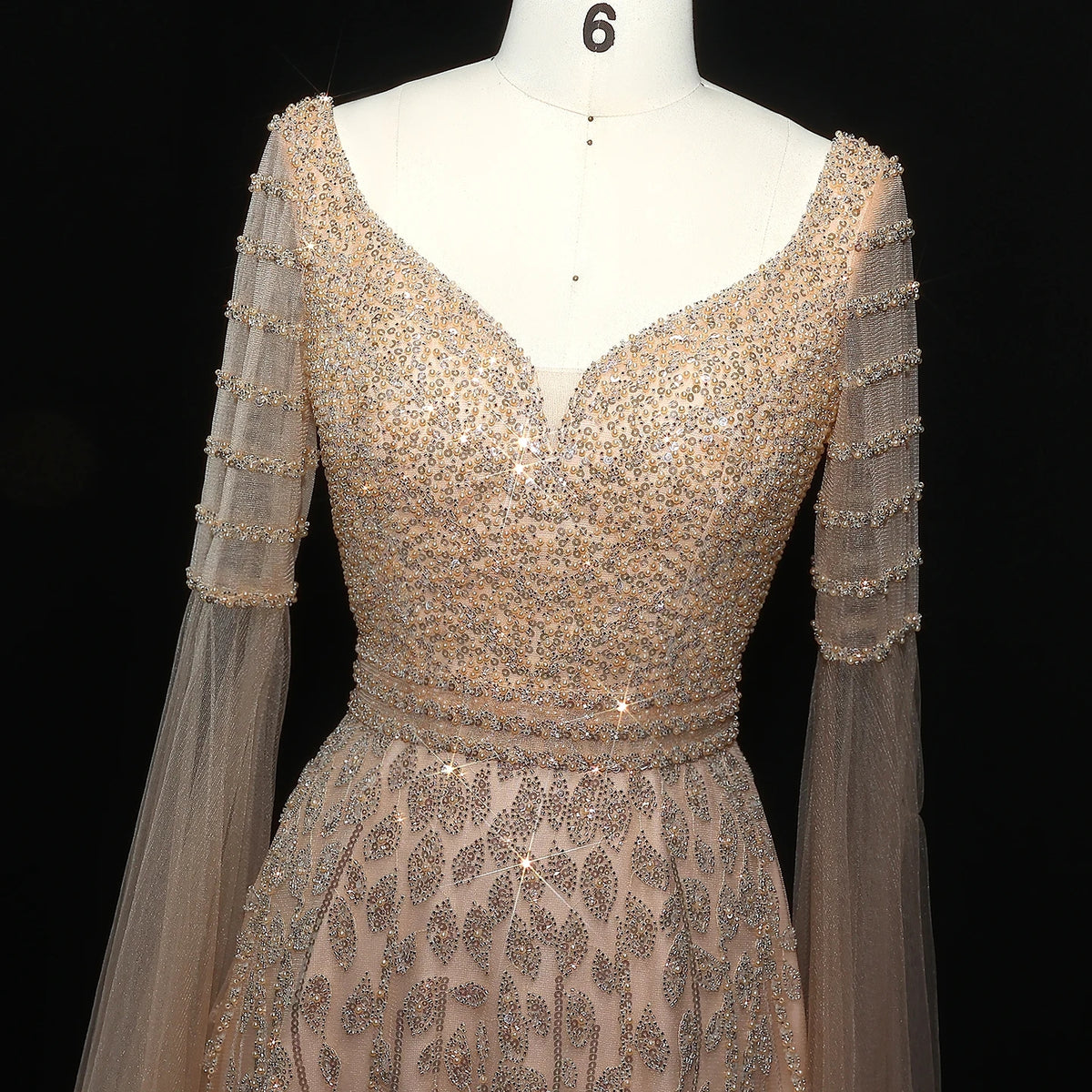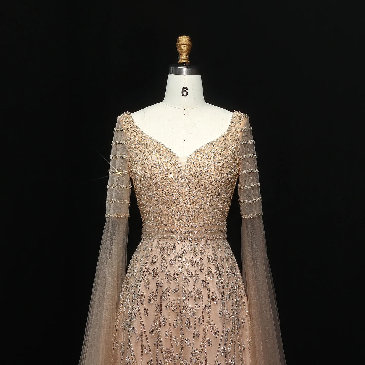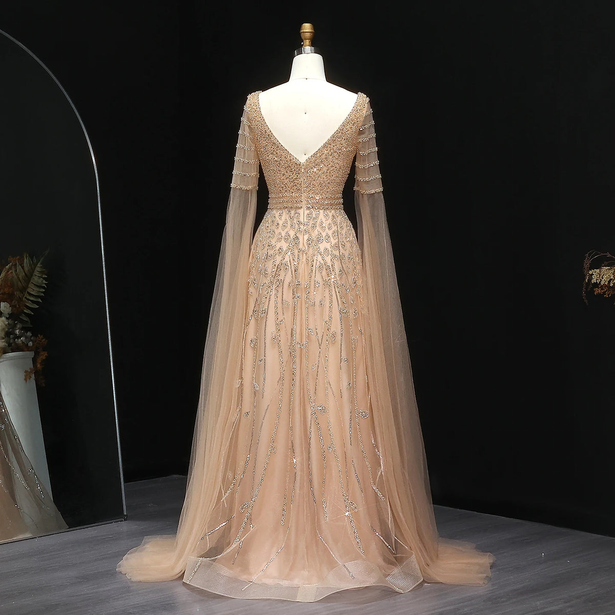 Elegant Pink Beaded Evening Gown with Cape Sleeves SS034