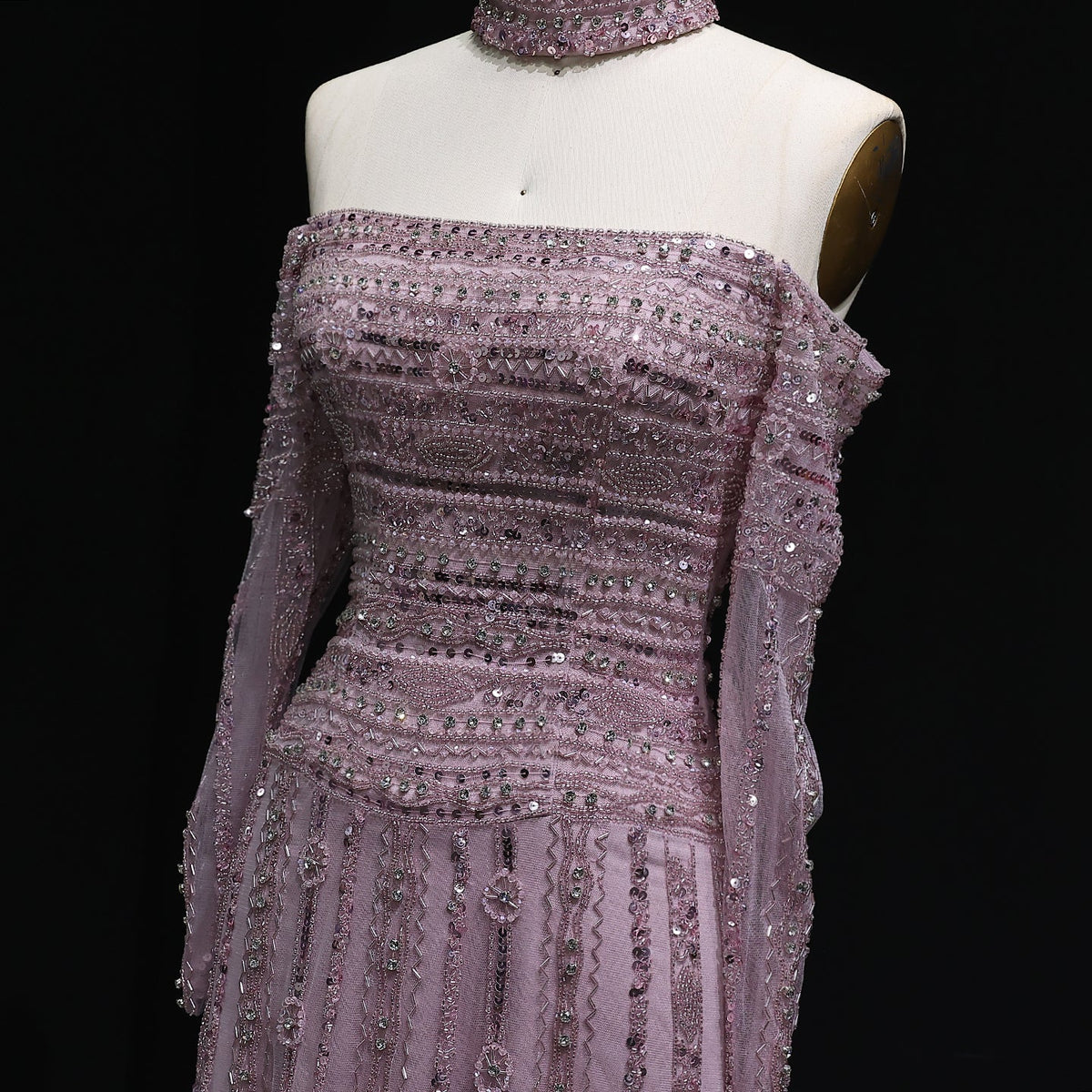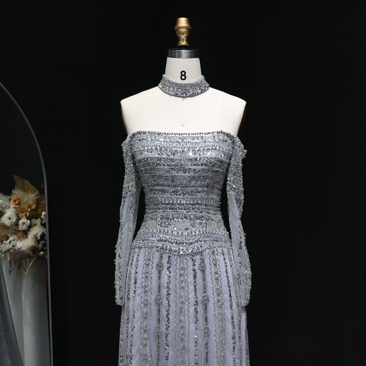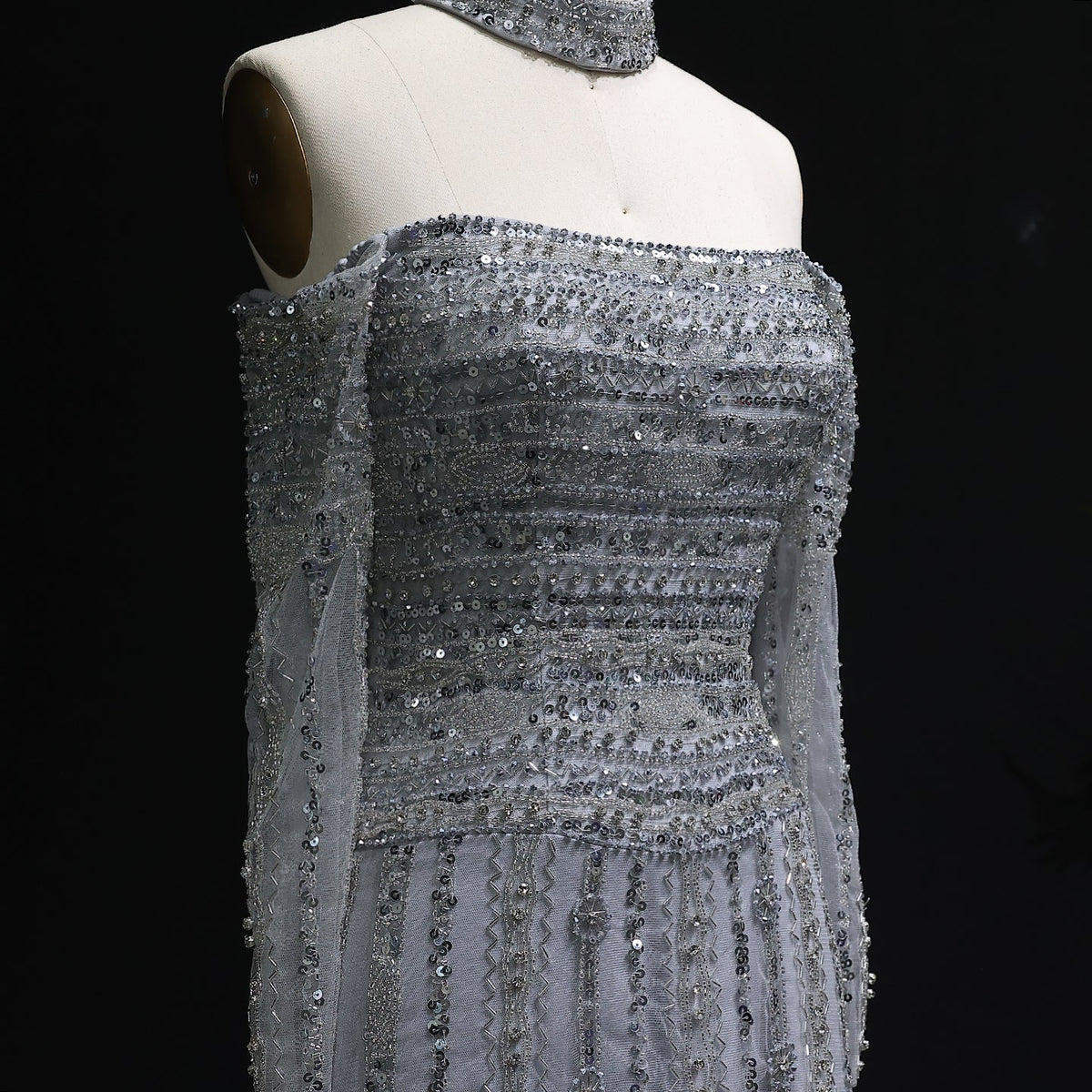 Elevate your evening elegance with this Luxury Beaded Off Shoulder Pink Evening Dress, featuring intricate beadwork that enhances its sophisticated silhouette. The off-shoulder design gracefully highlights the neckline, complemented by a matching choker for a cohesive, refined look. Crafted to combine style and comfort, this dress is perfect for formal occasions where making a lasting impression is essential.