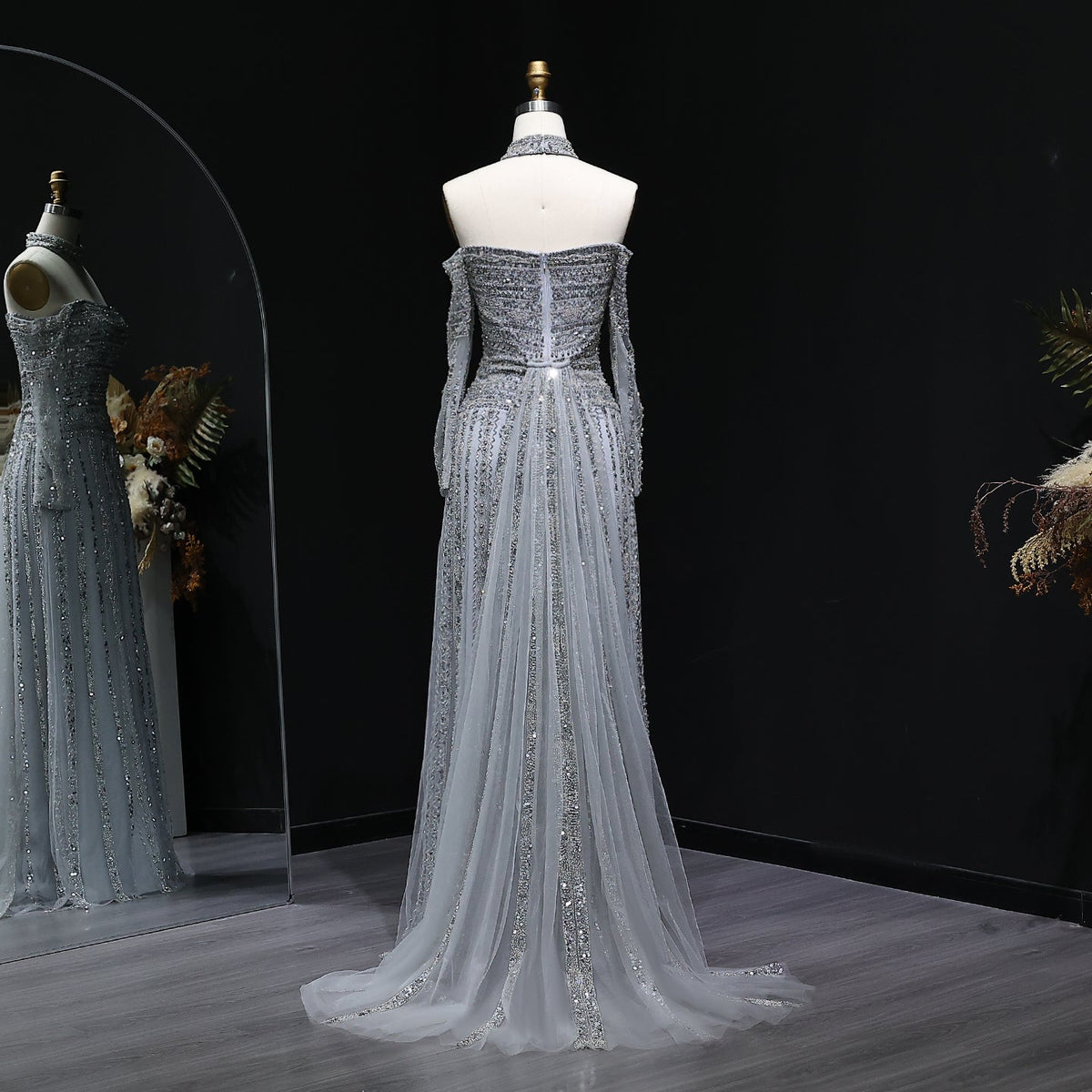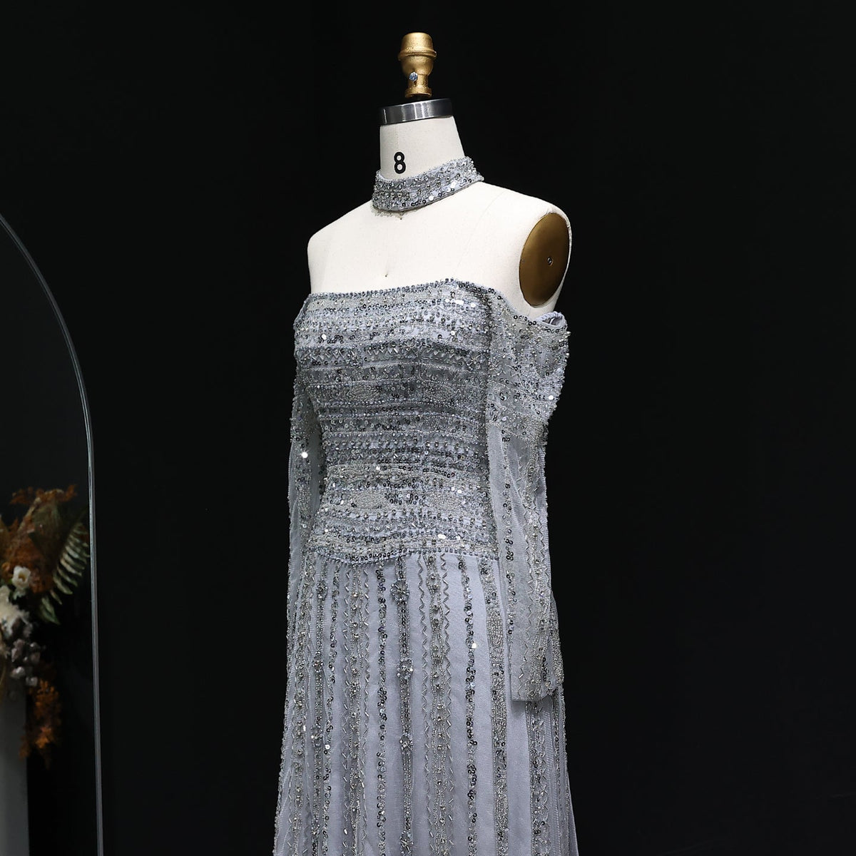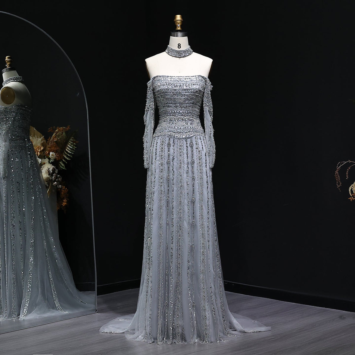 Elevate your evening elegance with this Luxury Beaded Off Shoulder Pink Evening Dress, featuring intricate beadwork that enhances its sophisticated silhouette. The off-shoulder design gracefully highlights the neckline, complemented by a matching choker for a cohesive, refined look. Crafted to combine style and comfort, this dress is perfect for formal occasions where making a lasting impression is essential.