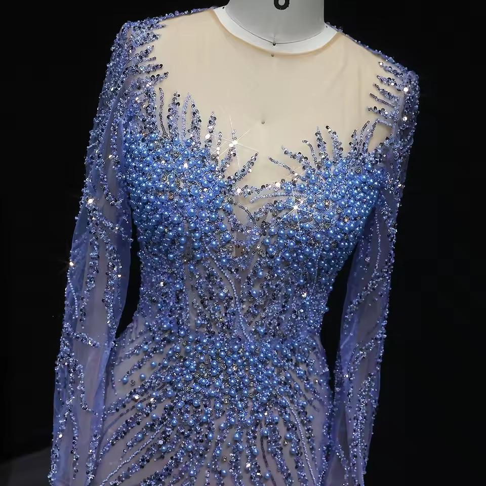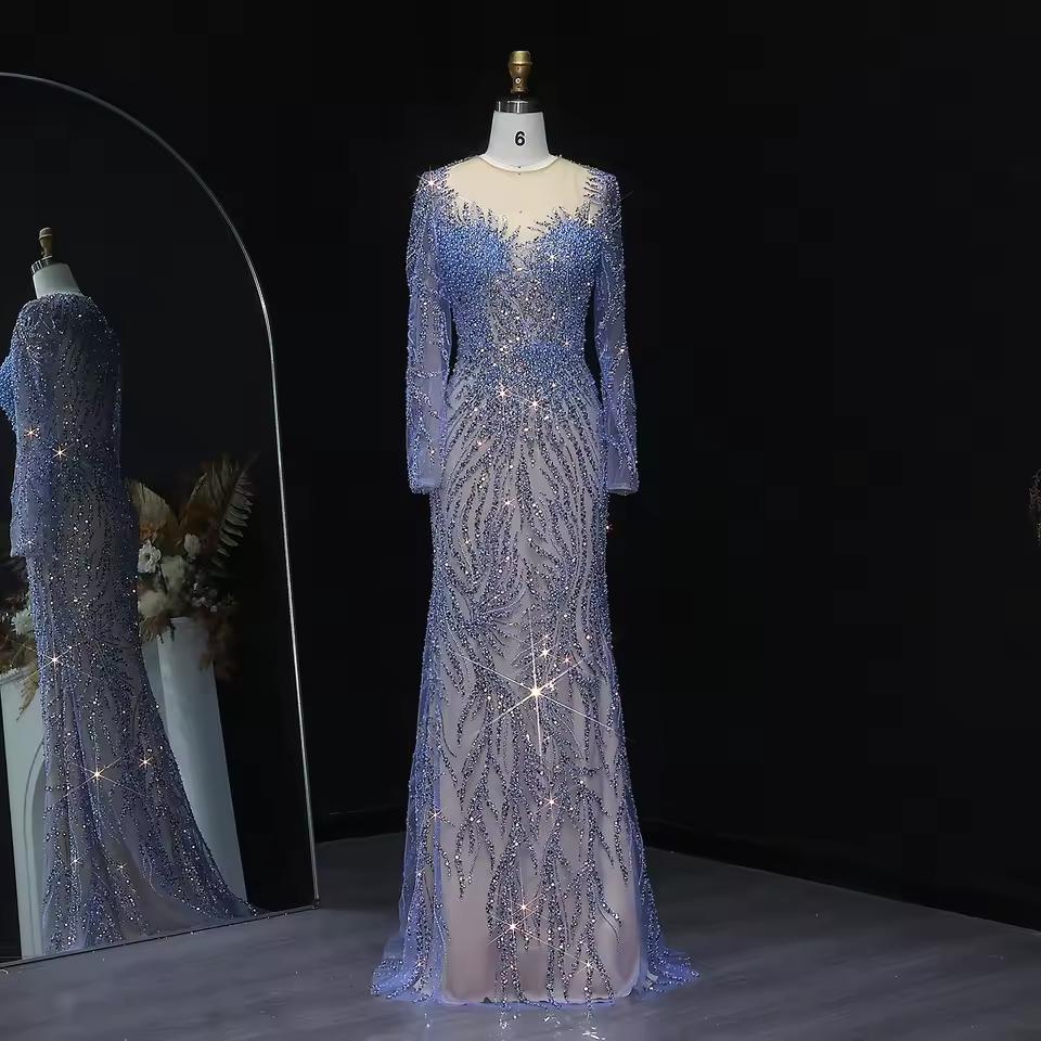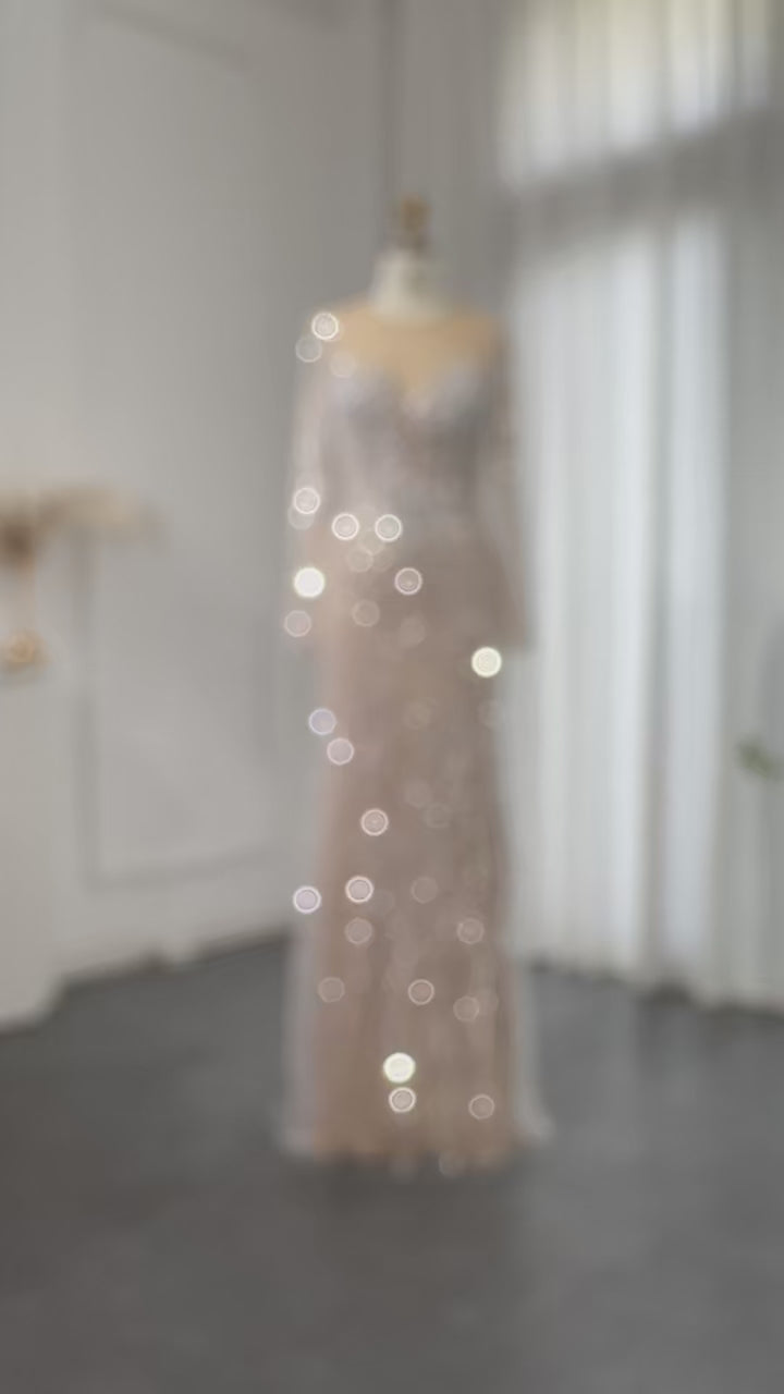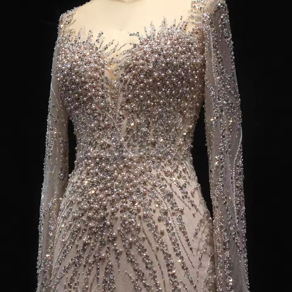 Luxury Dubai White Nude Mermaid Evening Dresses Long Sleeve SS684