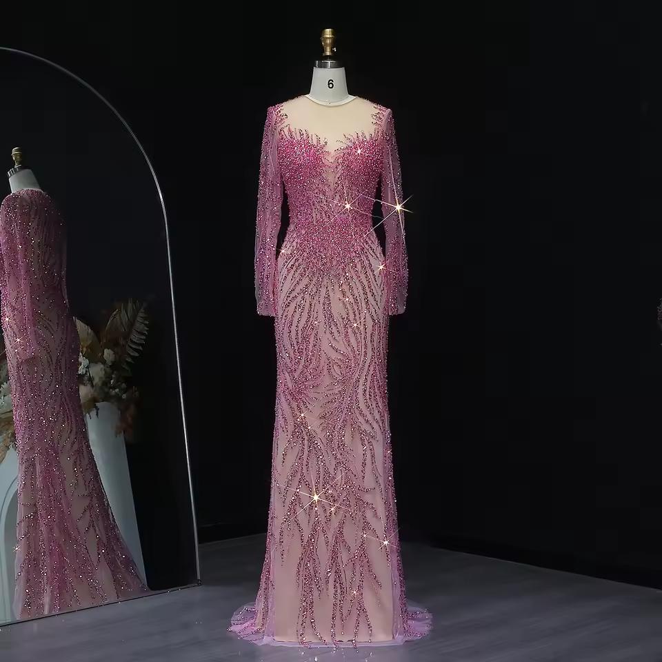 This elegant and sophisticated Luxury Dubai White Nude Mermaid Evening Dress, SS111, will make you stand out at any formal event. With its long sleeves, mermaid silhouette, and luxurious fabric, this dress exudes luxury and class. Perfect for those wanting to make a statement and leave a lasting impression.