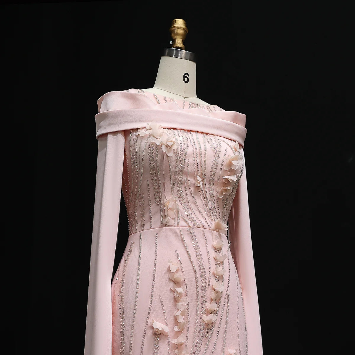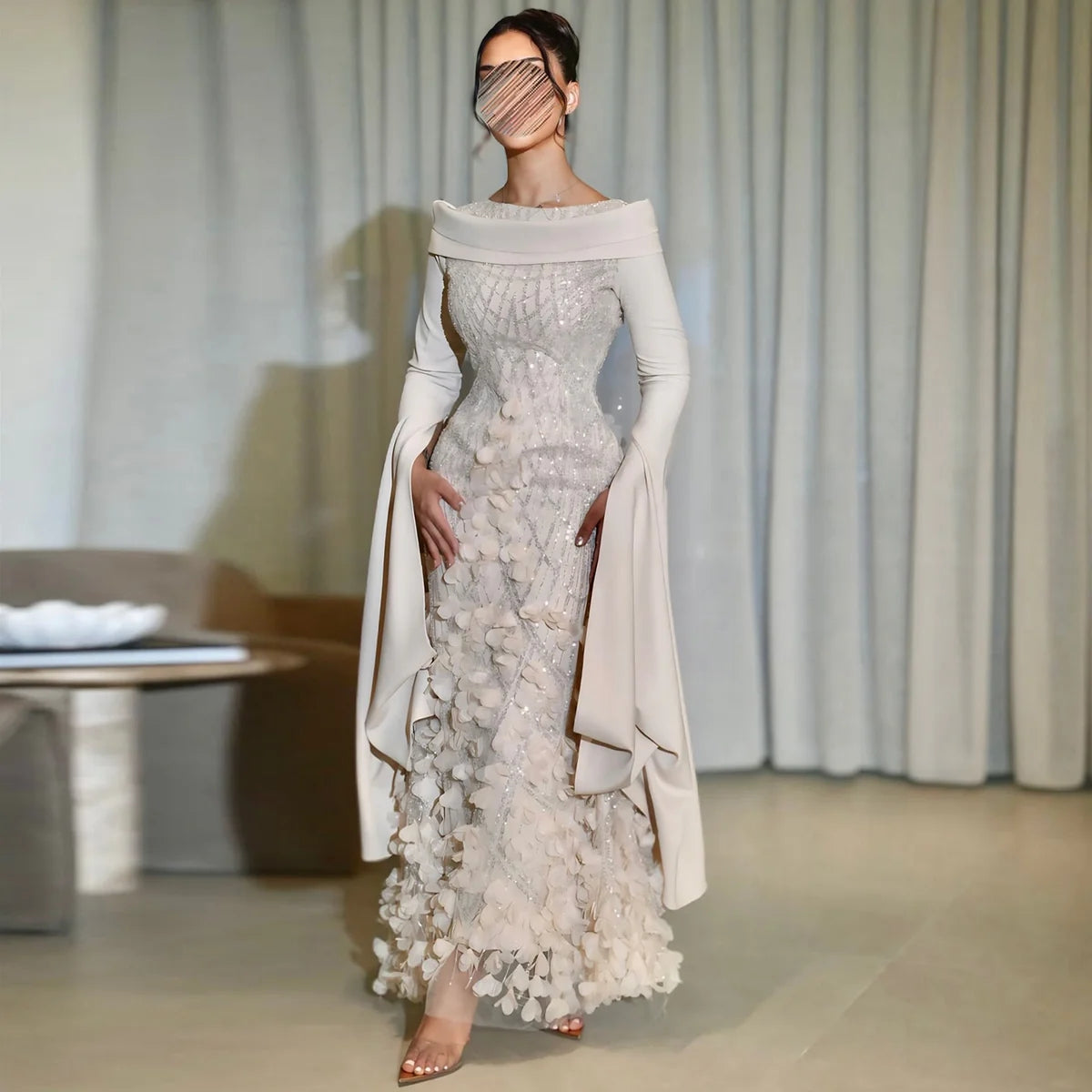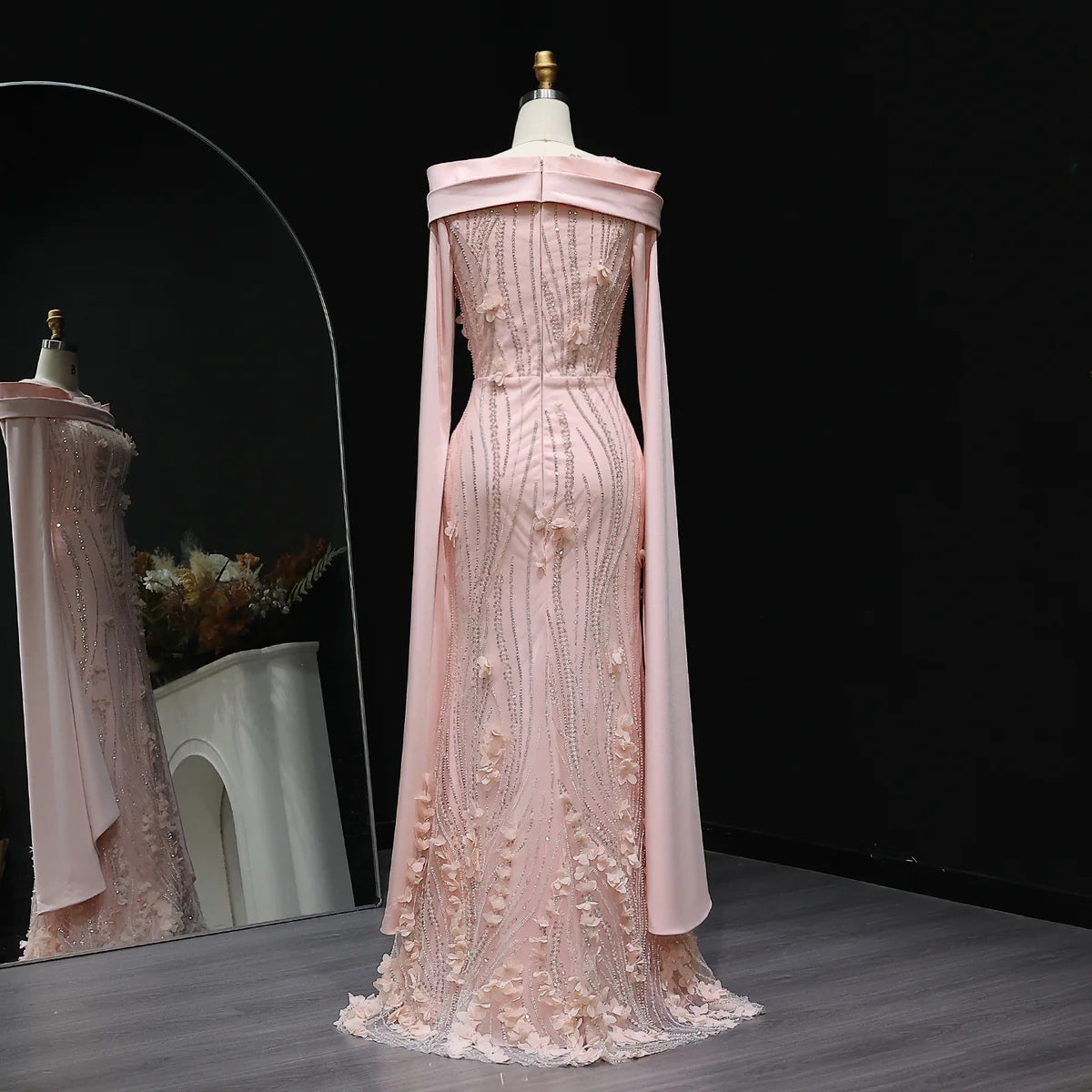 Romantic 3D Floral Evening Dress with Cape Sleeves SS272