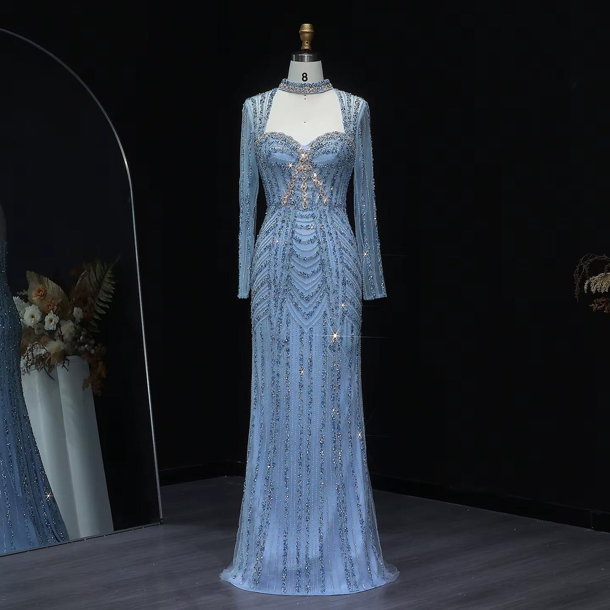 Light Blue Arabic Evening Dress with Long Sleeves SS065