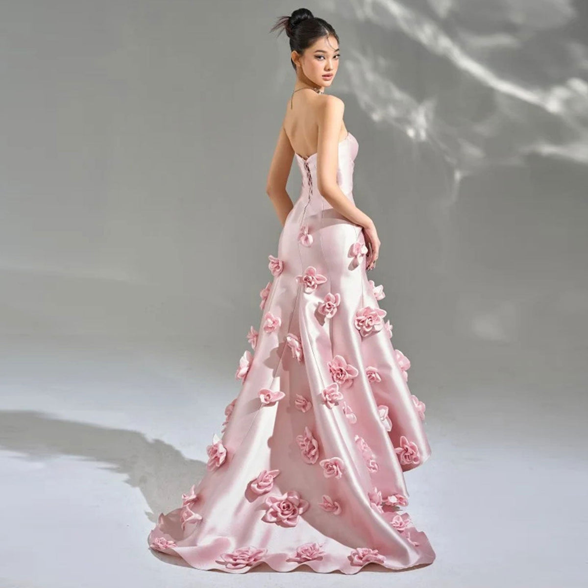 Elegant Pink 3D Flowers Strapless Evening Dress SF025