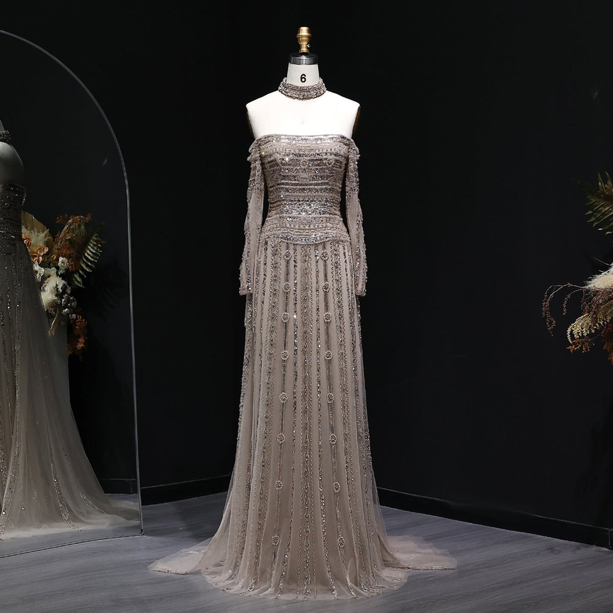 Luxury Dubai Nude Mermaid Evening Dresses with Gloves SS689