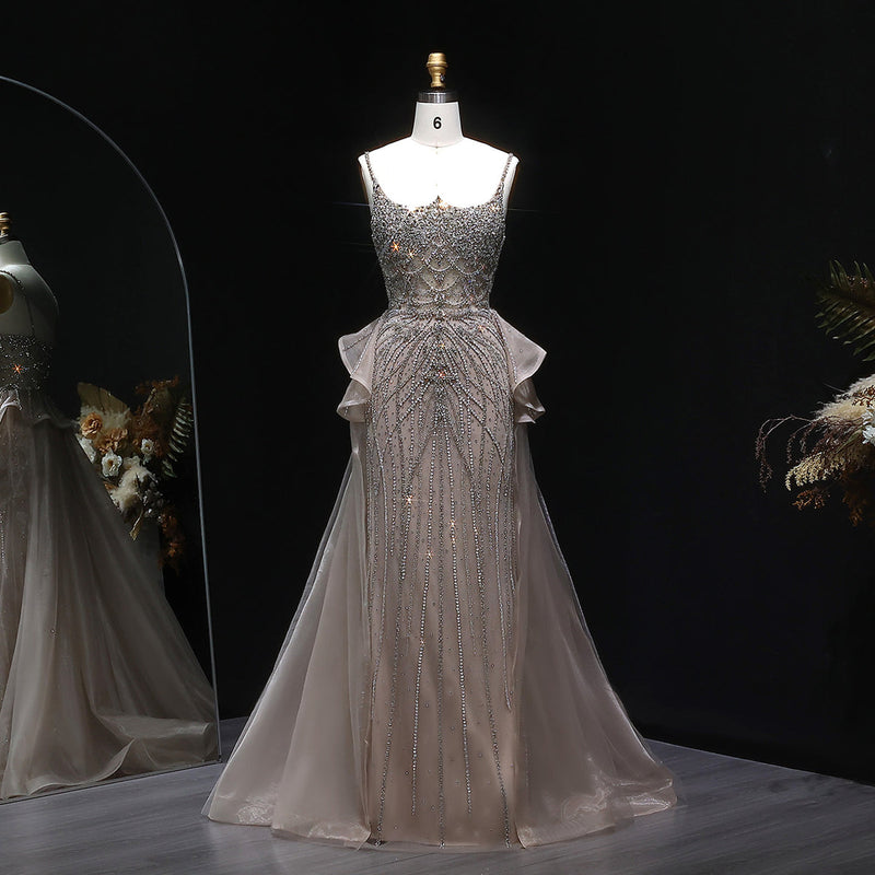 Luxury Beaded Evening Dress with Flowing Overskirt SS064