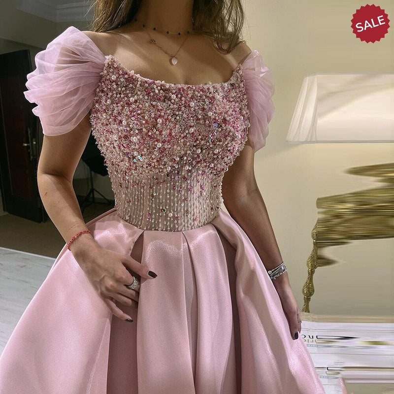 Luxury Baby Pink Off Shoulder Evening Dress for Women Wedding SS500