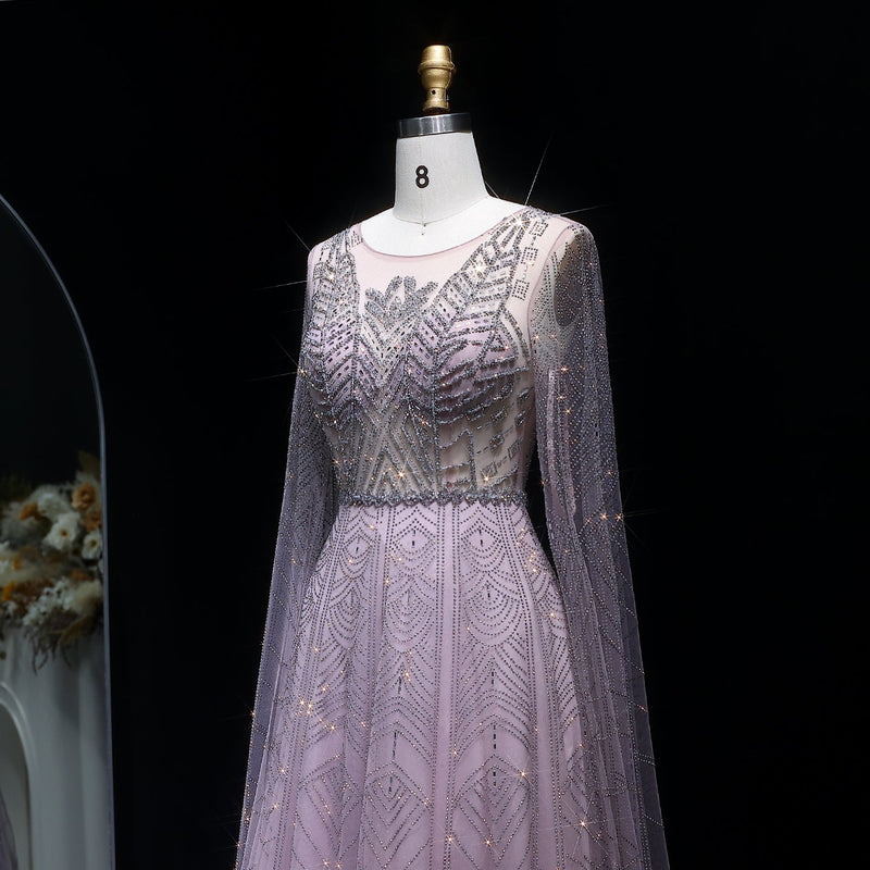 Luxury Dubai Beaded Arabic Lilac Evening Dress with Sleeves SS462