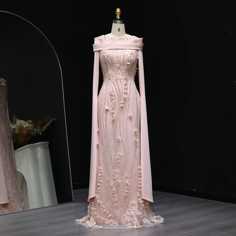 Pink Arabic Mermaid Evening Dress with Cape Sleeves SS033
