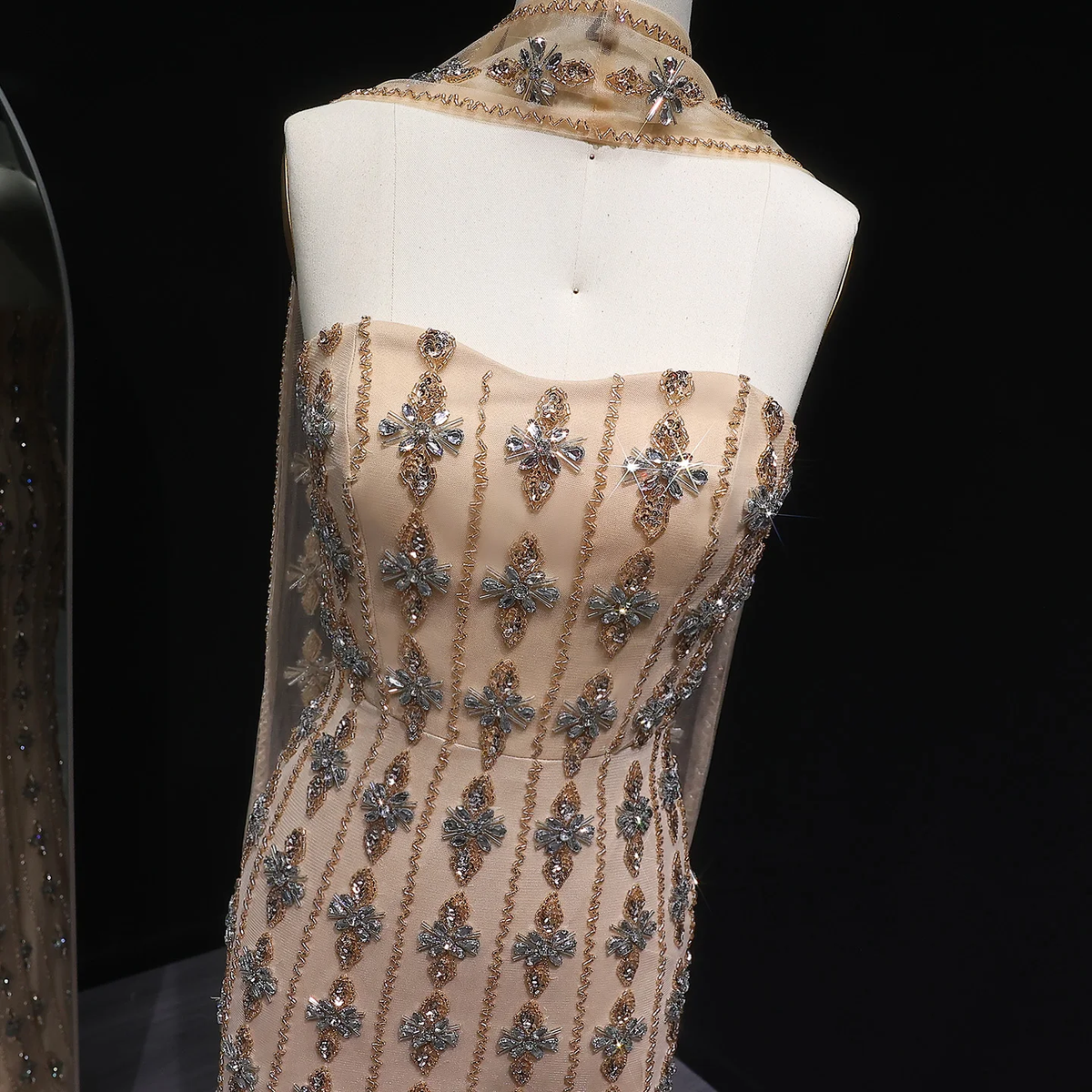 Luxury nude beaded Dubai strapless outfit for Arabic prom formal SS229