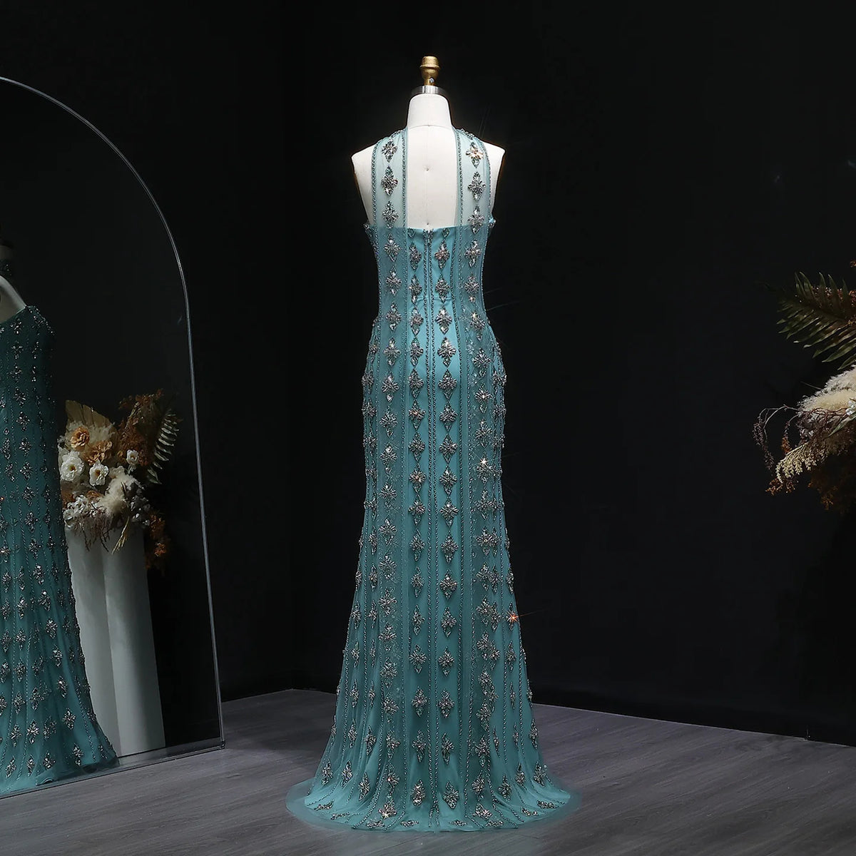 This luxurious nude beaded Dubai strapless outfit is the perfect choice for any Arabic prom or formal event. With intricate beadwork and a strapless design, it exudes elegance and sophistication. Made with high-quality materials, you'll feel confident and stunning all night long.