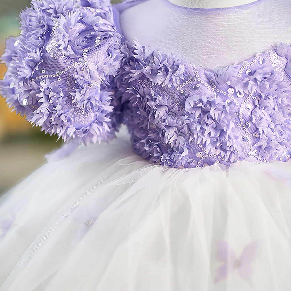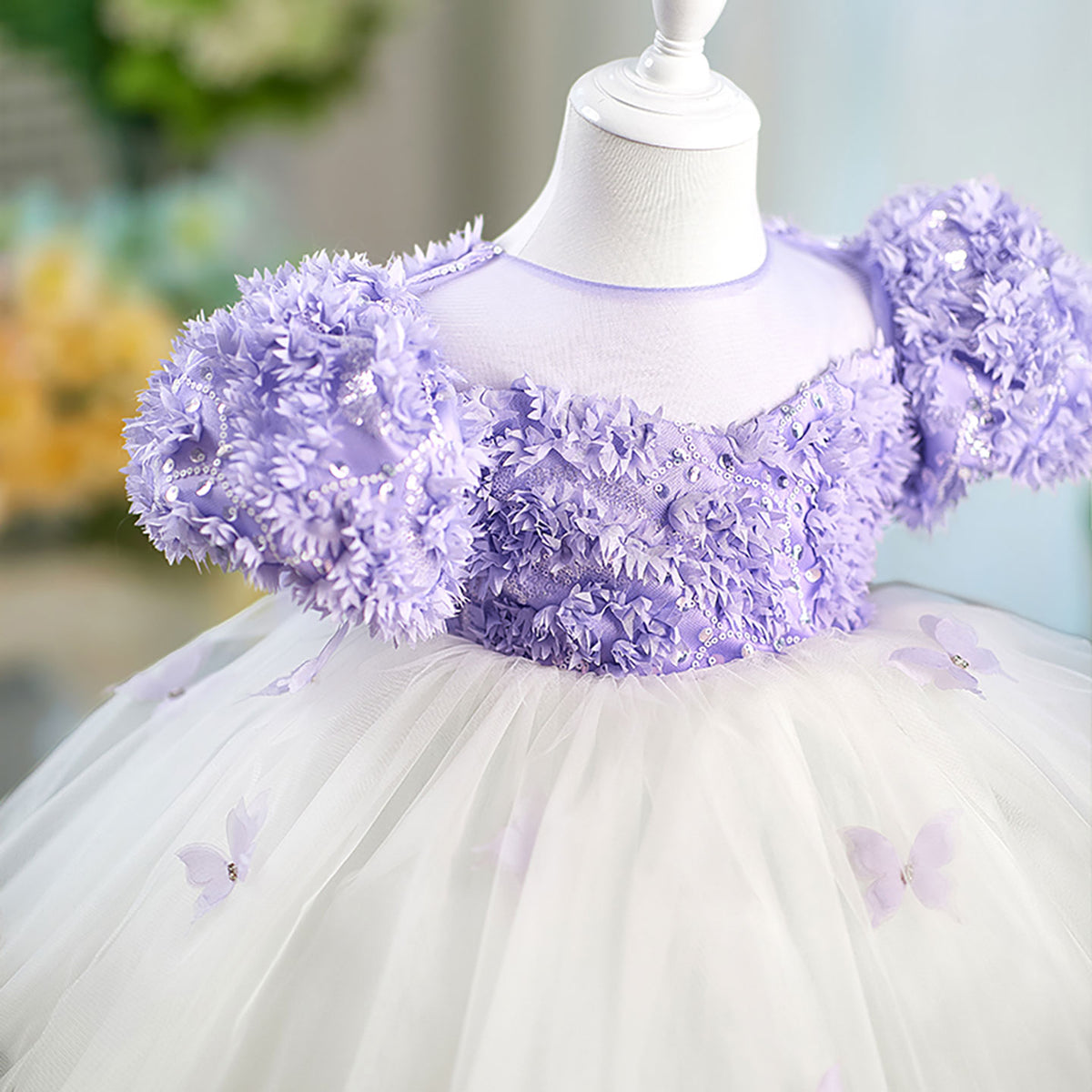 Butterfly Tulle Bowed Flower Girl Dress Knee-Length J554