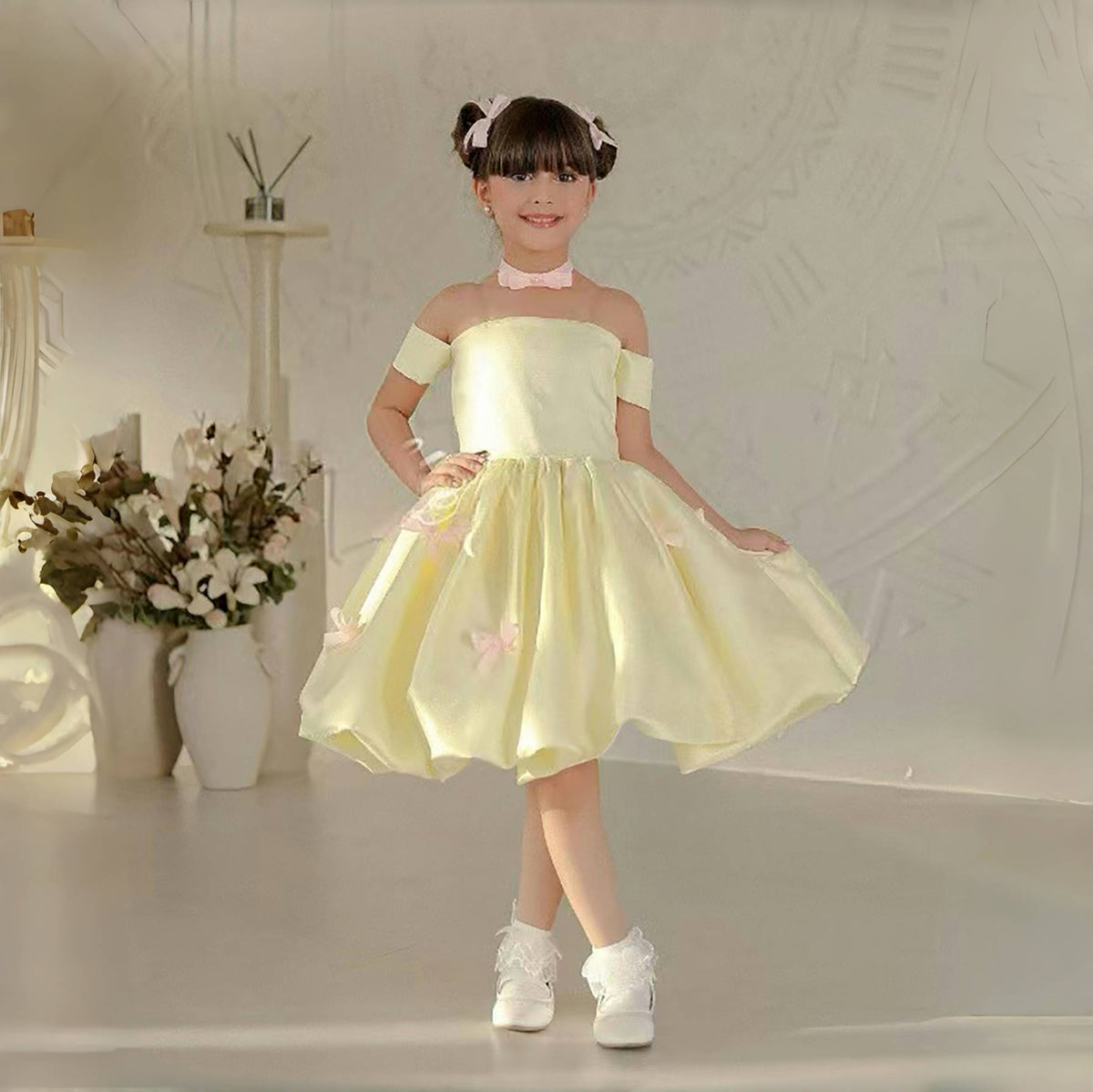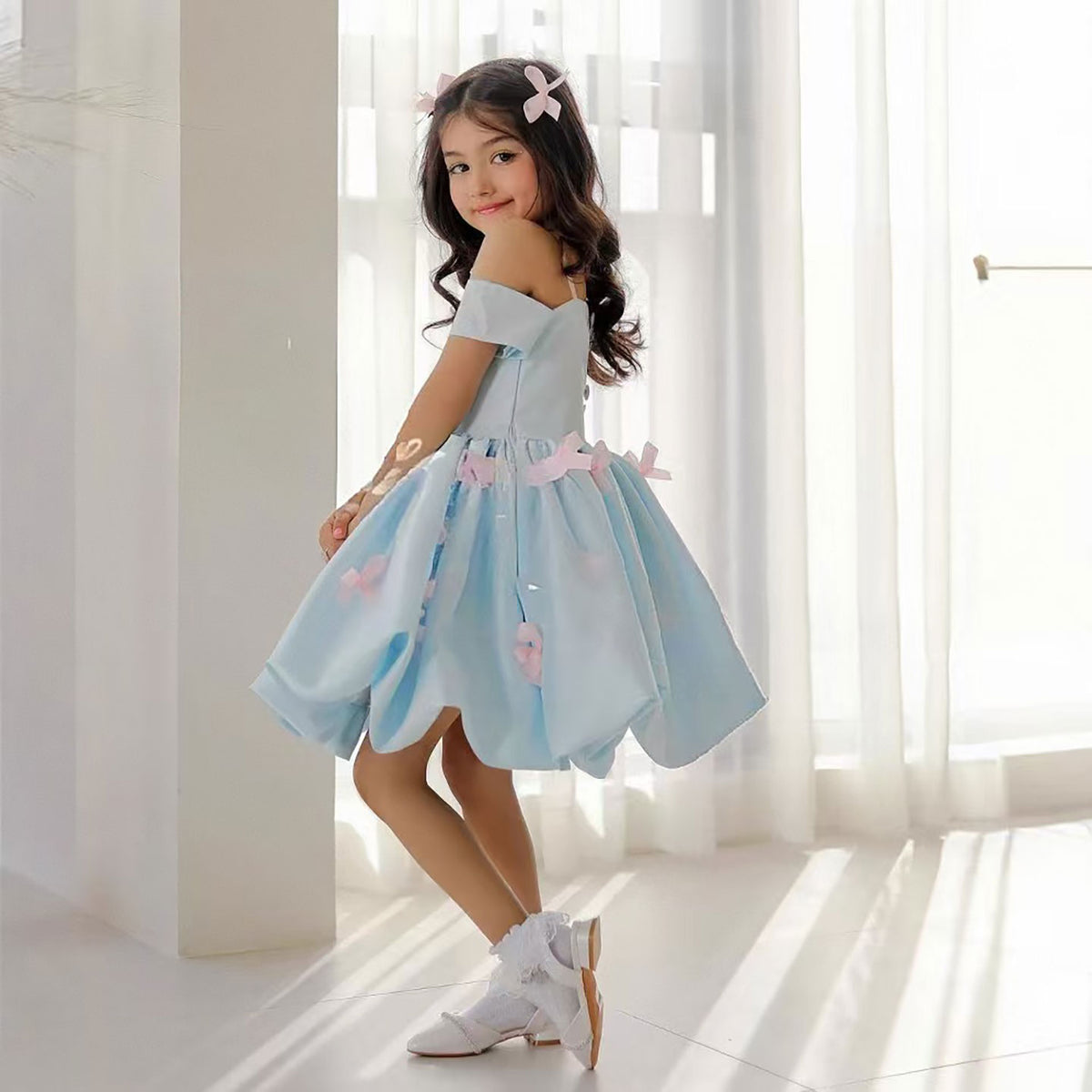 Off-Shoulder Bowed Satin Flower Girl Dress D082