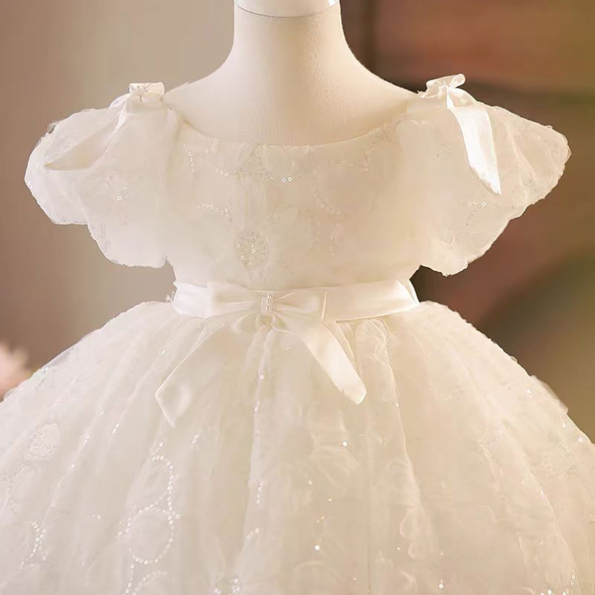 Scoop Beaded Flower Girl Dress With Bow D086