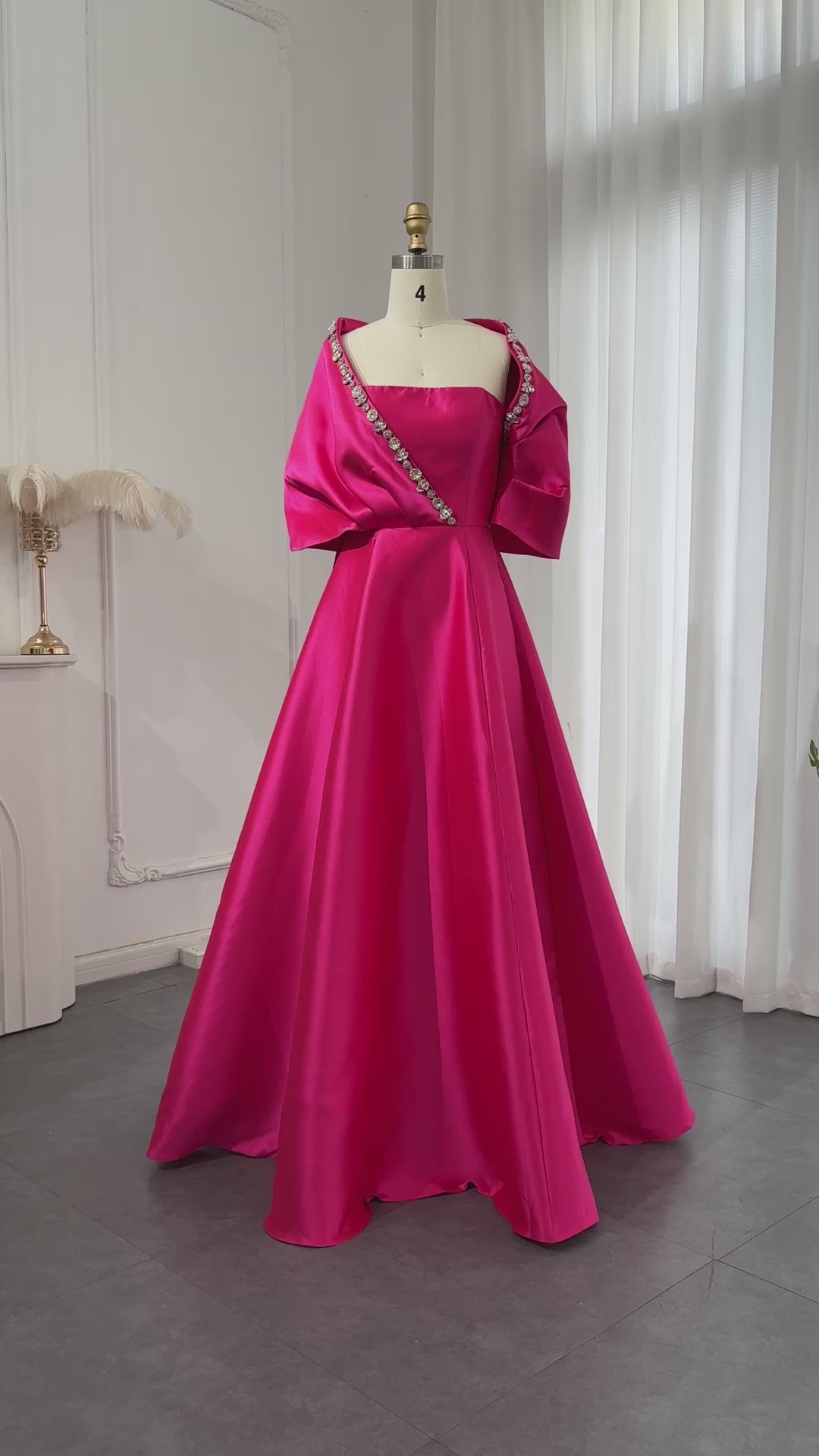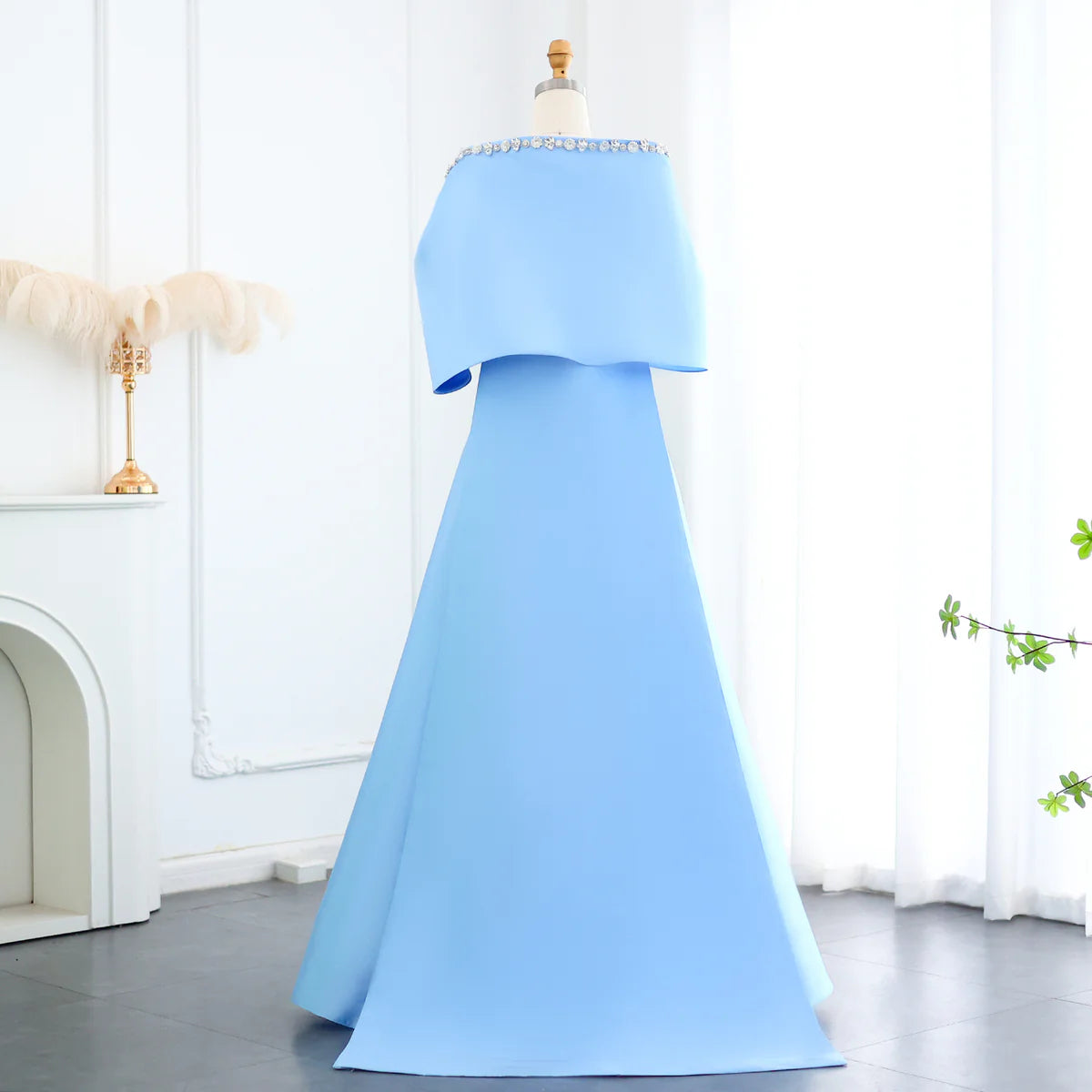 Luxury Overskirt Evening Dress with Sparkling Crystals and Cape SS577