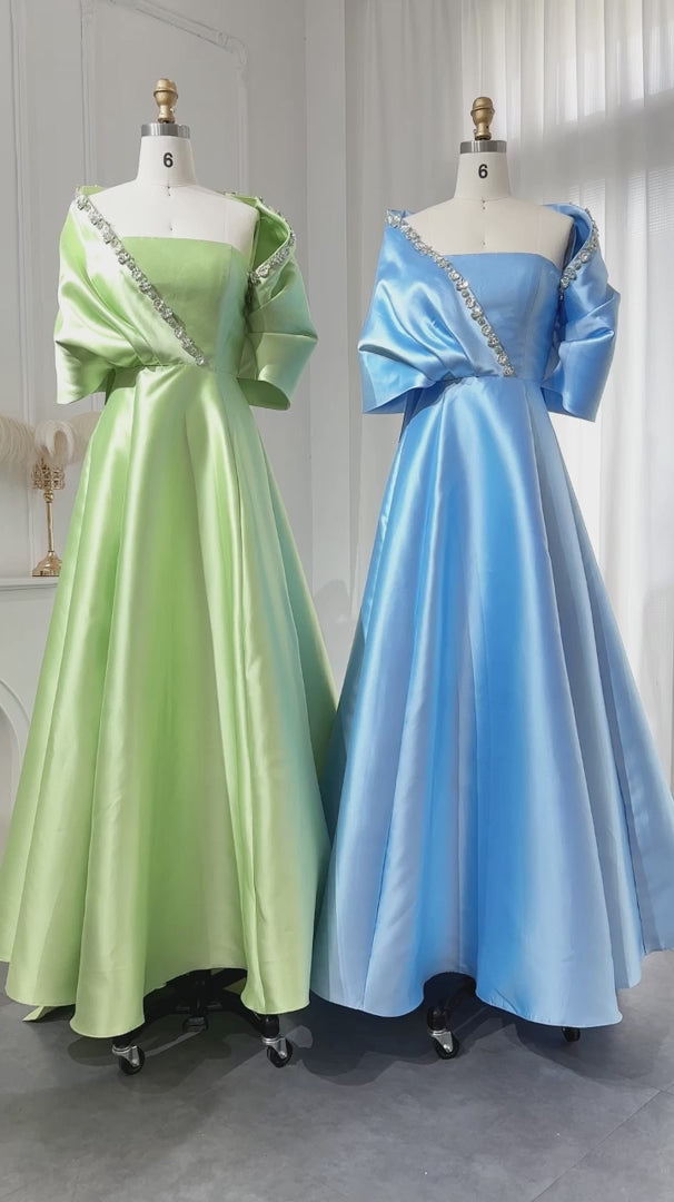 Elevate your evening elegance with this Luxury Overskirt Evening Gown, featuring a majestic cape and shimmering crystals for a refined, radiant look. The graceful overskirt adds dimension and movement, while the crystal embellishments provide subtle yet captivating sparkle under evening lights. Perfect for formal occasions, this gown combines sophisticated design with standout details to ensure you command attention with timeless poise.