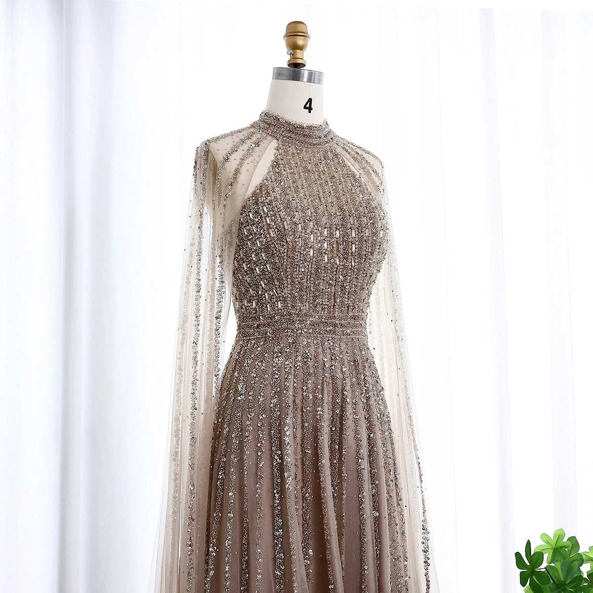 This luxurious Arabic Turquoise Evening Dress with Cape Sleeves SS085 exudes elegance and sophistication. Made with high-quality materials, its cape sleeves add a touch of drama to its already stunning design. Perfect for any special occasion, this dress will make you stand out with its unique and classy style.